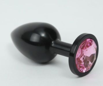 Анальная пробка металлическая, 8.2см, диаметр 3.5см, с розовым стразом, цвет черный/розовый