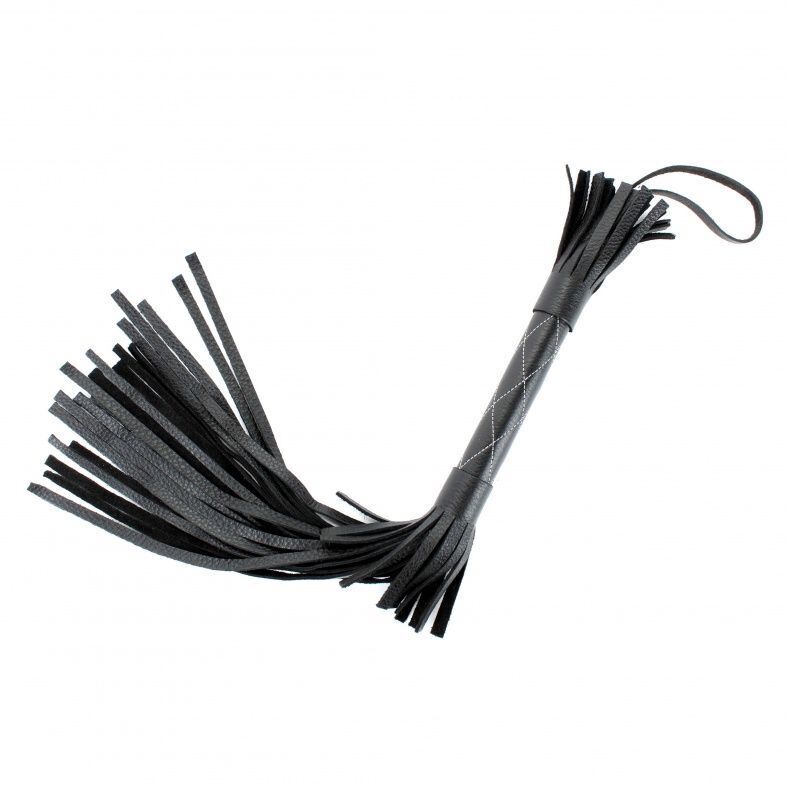 Плеть выполнена из высококачественной натуральной кожи, что гарантирует её долговечность и надёжность. Чёрный цвет делает её универсальным аксессуаром, который легко впишется в любую коллекцию БДСМ атрибутики. Размеры: длина плетки — 45 см, длина рукояти — 16 см. Не упустите возможность добавить этот уникальный предмет в свою коллекцию!