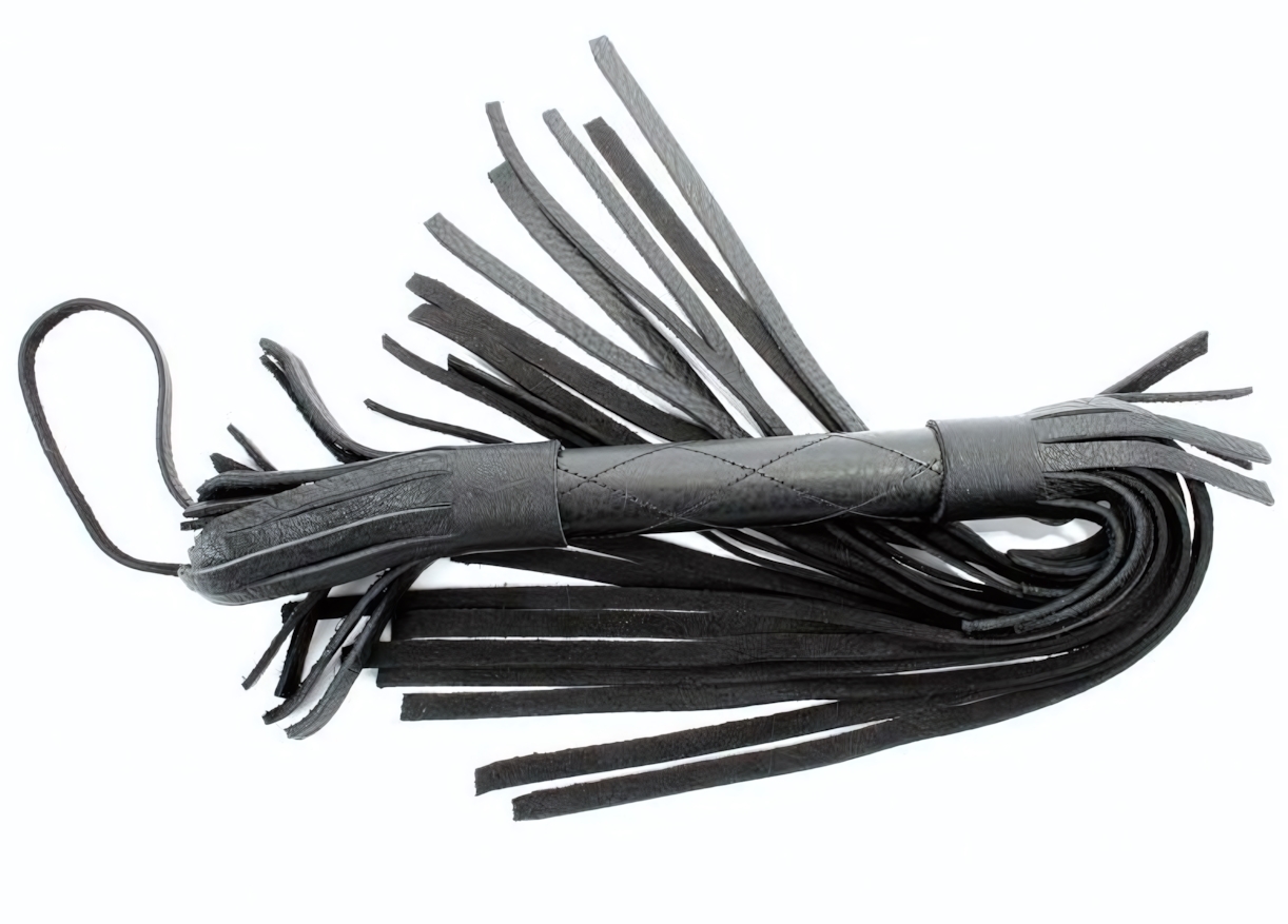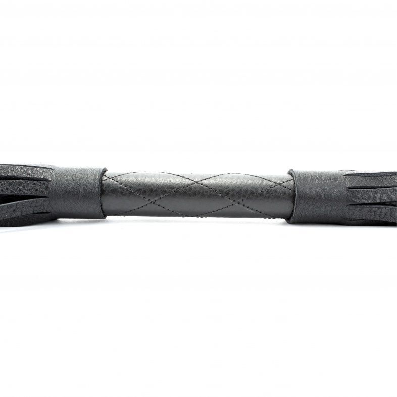 Плетка имеет жесткую ручку, также выполненную из кожи, что обеспечивает надежный захват и комфорт во время использования. Длина рукояти составляет 17 см, а длина хлыстов — 27 см, что позволяет легко маневрировать и контролировать силу удара. Благодаря петле на ручке, плетка удобно удерживается в руке, что делает её использование более безопасным и приятным.
