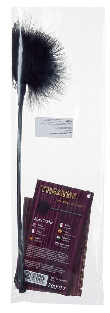 Черная щекоталка 'THEATRE' длиной 41.5 см создана для тех, кто ценит утонченные ощущения и хочет разнообразить свои отношения. Мягкий пушистый наконечник дарит нежные прикосновения, а эргономичная ручка из пластика обеспечивает удобный захват.