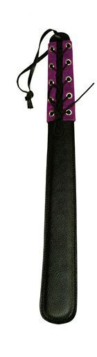 Длина шлёпалки составляет 42 см, а ширина — 5 см, что делает её удобной для использования. Чёрный цвет с фиолетовыми акцентами придаёт изделию элегантный вид, а качественные материалы гарантируют долговечность. Этот аксессуар станет отличным выбором для тех, кто ценит комфорт и стиль в своих интимных играх.