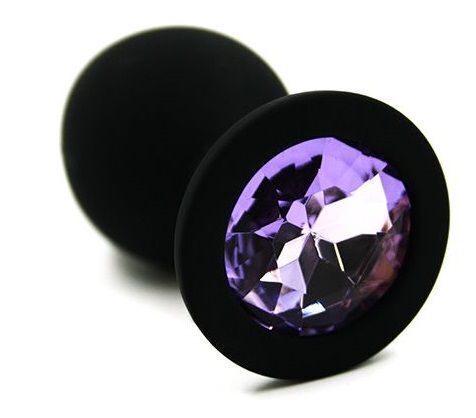 Чёрная силиконовая анальная пробка с фиолетовым кристаллом