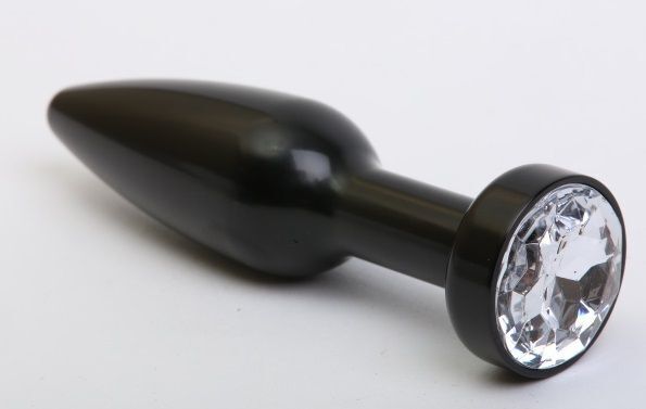 Пробка анальная удлинённая с кристаллом, металл, 11,2 см, диаметр 2,9 см, чёрная