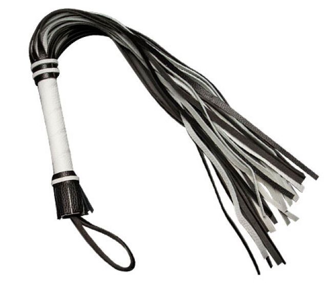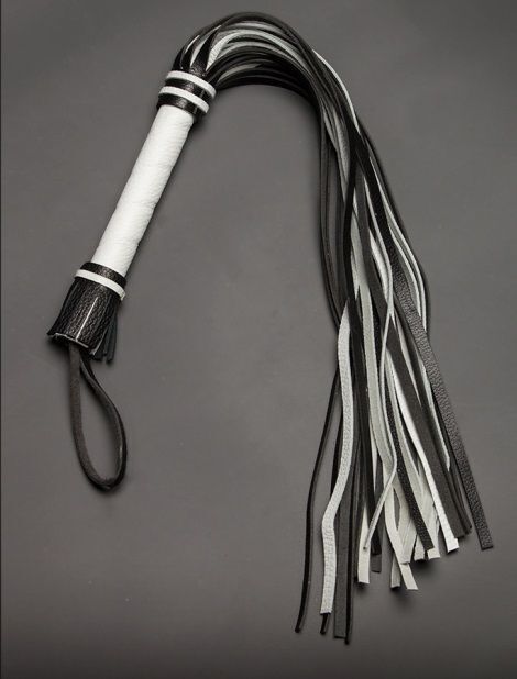 Чёрно-белая многохвостая плеть - идеальный аксессуар для BDSM