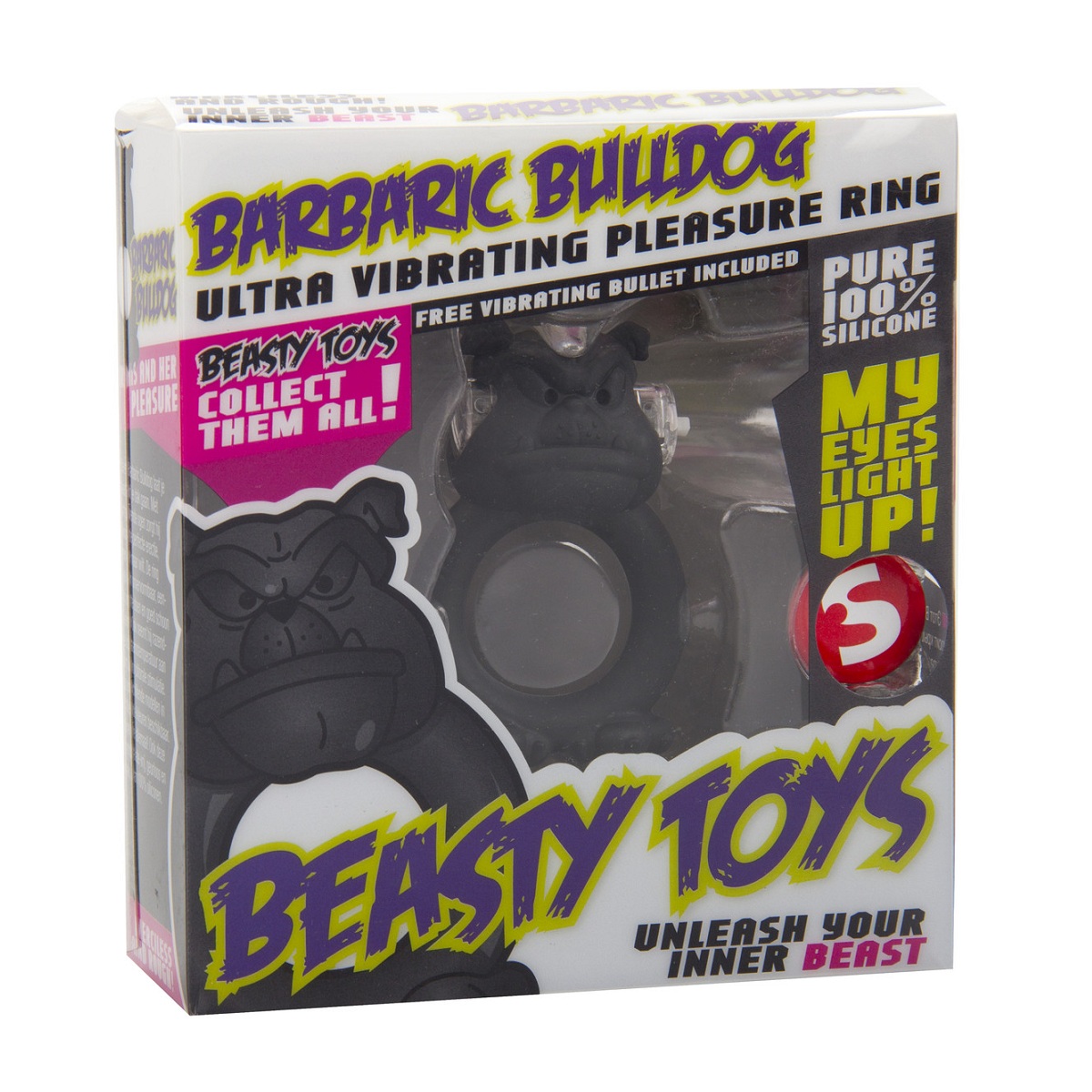 Виброкольцо на пенис "Barbaric Bulldog" создано для тех, кто хочет усилить ощущения и добавить в близость больше страсти. Эластичное кольцо поддерживает эрекцию, а встроенный клиторальный стимулятор в форме бульдога обеспечивает дополнительную вибрацию для партнёрши. Во время работы у фигурки загораются красные глаза, создавая эффектную атмосферу и усиливая визуальное возбуждение.