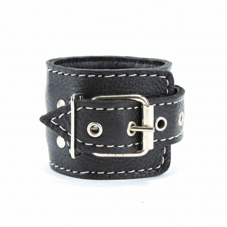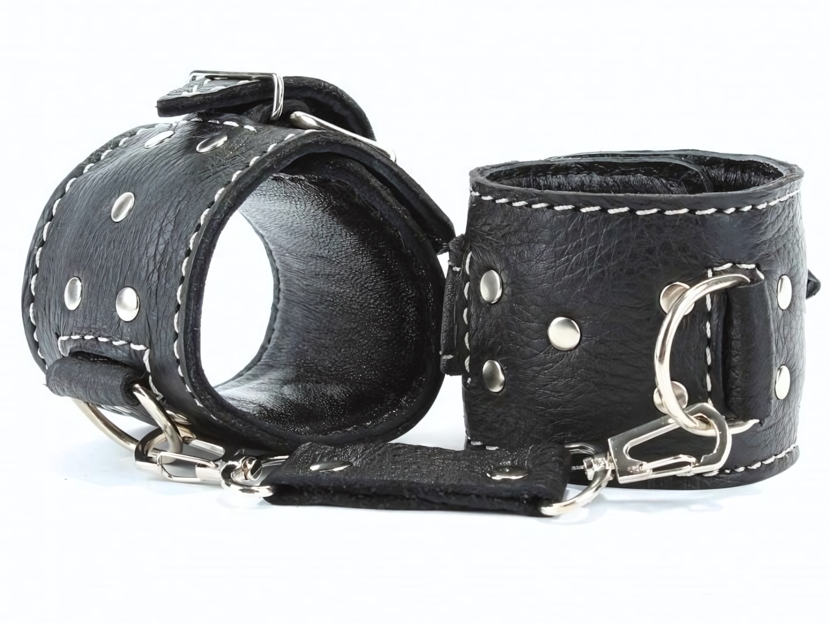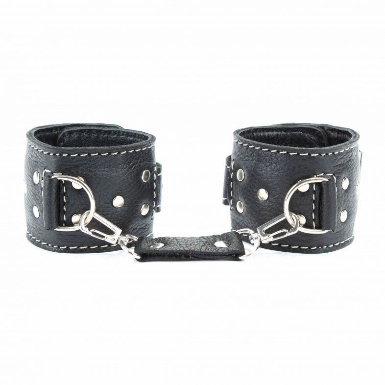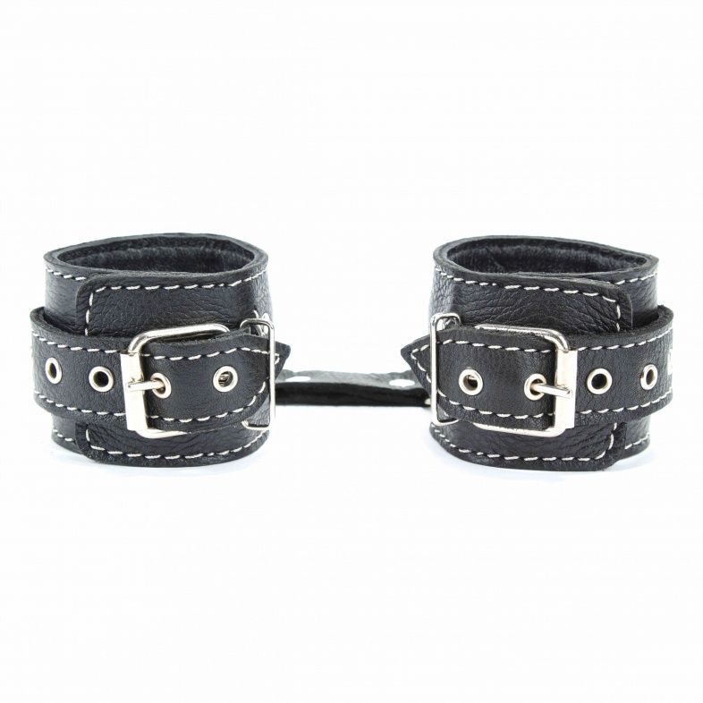 Наручники кожаные черные с регулируемым размером, натуральная кожа, мягкая подкладка, 16-25 см