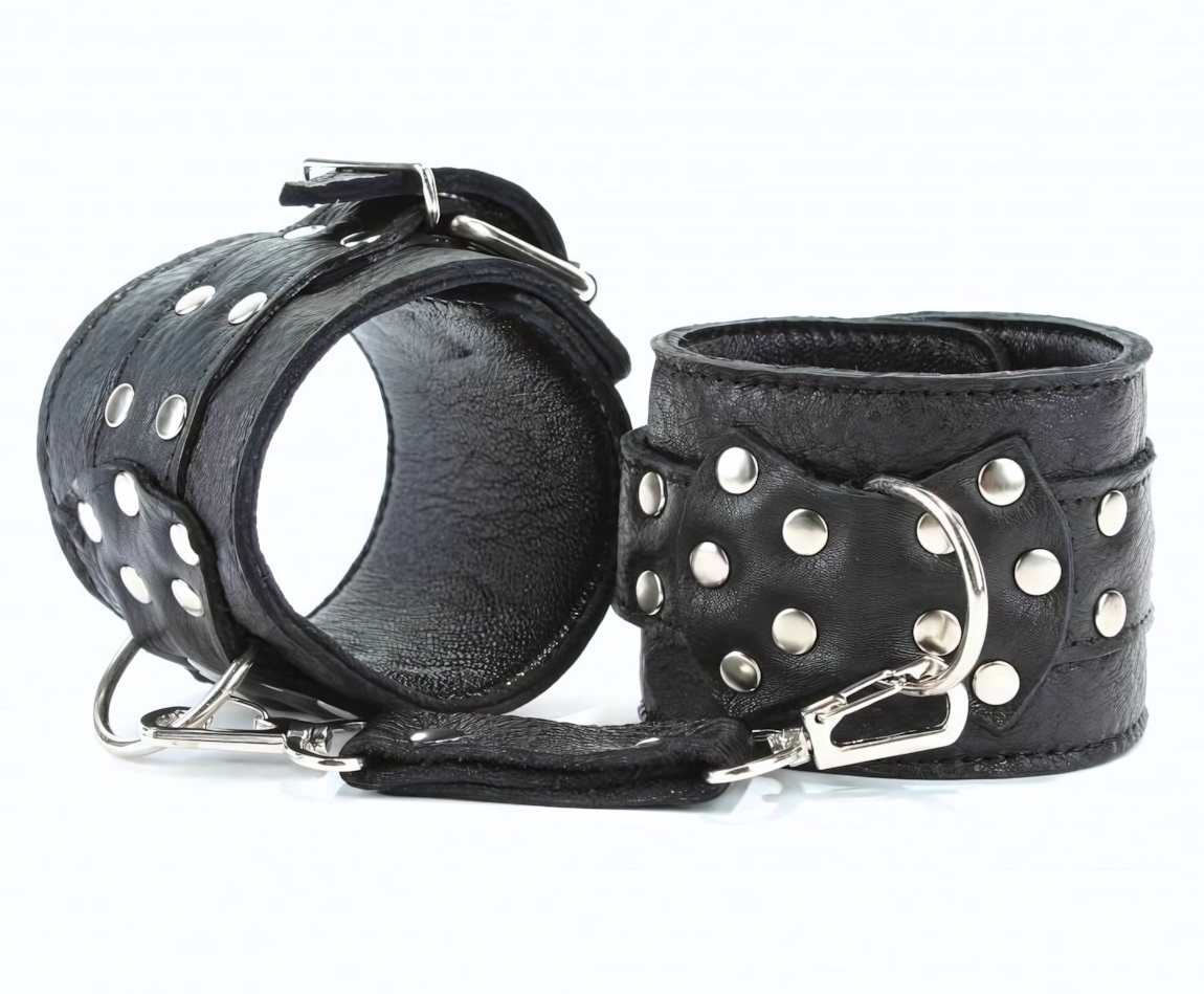 Черные кожаные оковы 'БДСМ Арсенал' — идеальный выбор для тех, кто ценит качество и комфорт во время экспериментов. Натуральная кожа с нежным подкладом обеспечивают приятные ощущения, а надежная фиксация гарантирует безопасность.