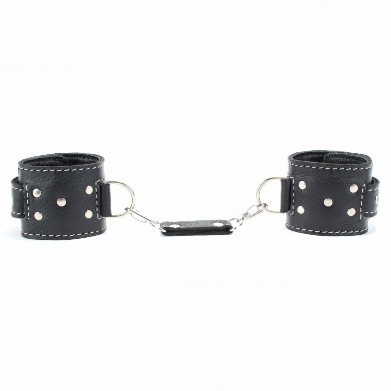 Наручники кожаные с мягкой подкладкой, регулируемый размер 17-27 см, черные, натуральная кожа
