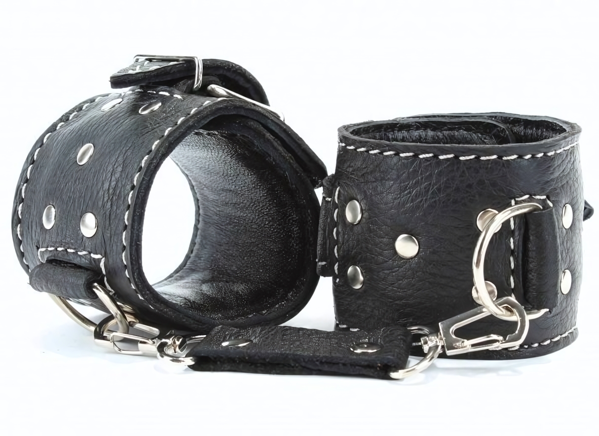 Изысканные кожаные наручники сочетают безопасность, эстетику и удобство. Мягкая подкладка из перчаточной кожи обеспечивает комфорт даже при длительном использовании, а регулируемые ремешки адаптируются под анатомические особенности.