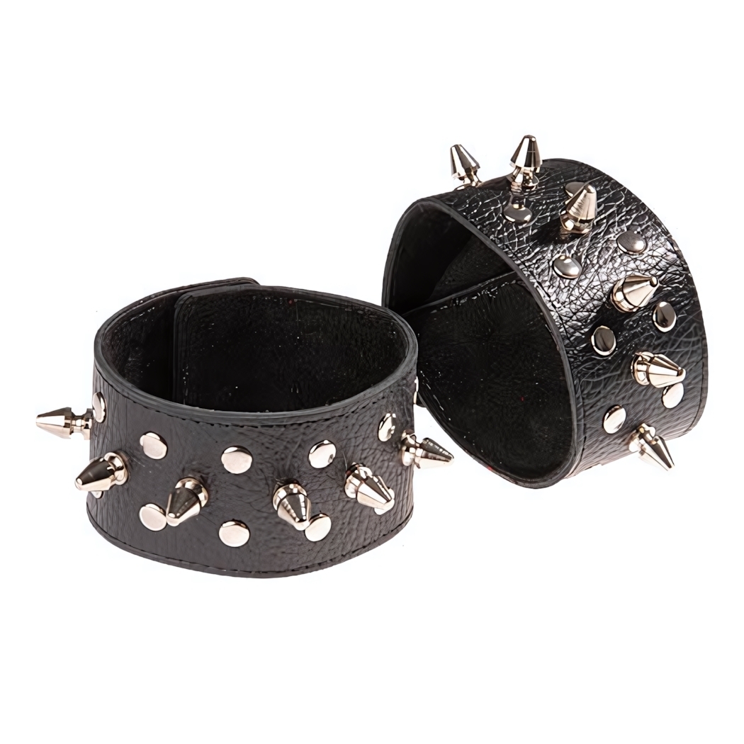 Напульсники кожаные черные с шипами и заклепками, длина шипов 1.2см