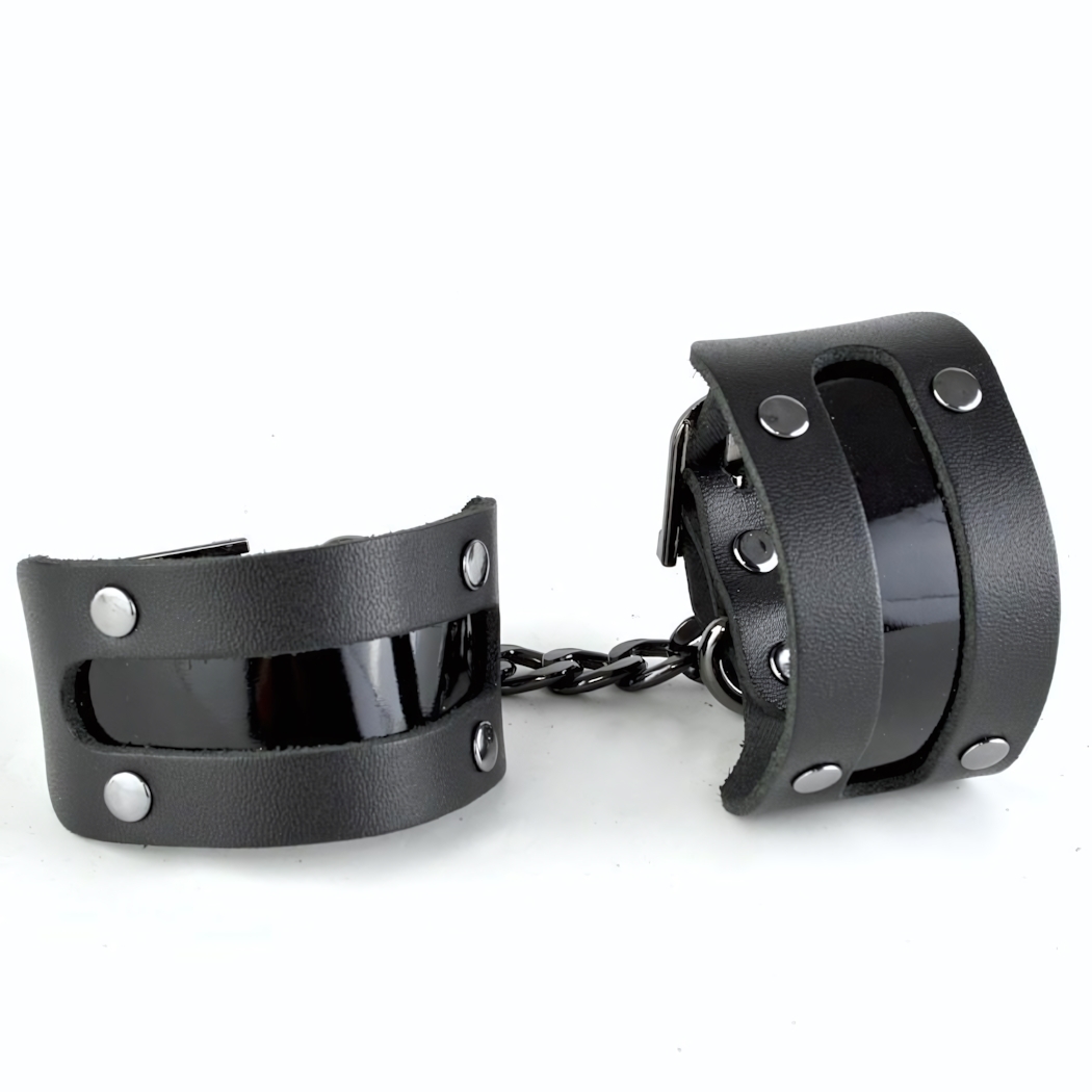 Черные кожаные наручники с эффектной лаковой вставкой 'Пятница' созданы для тех, кто ценит качество и эстетику в интимных аксессуарах. Натуральная кожа обеспечивает комфортное использование, а стильный дизайн добавит страсти в ваши отношения.