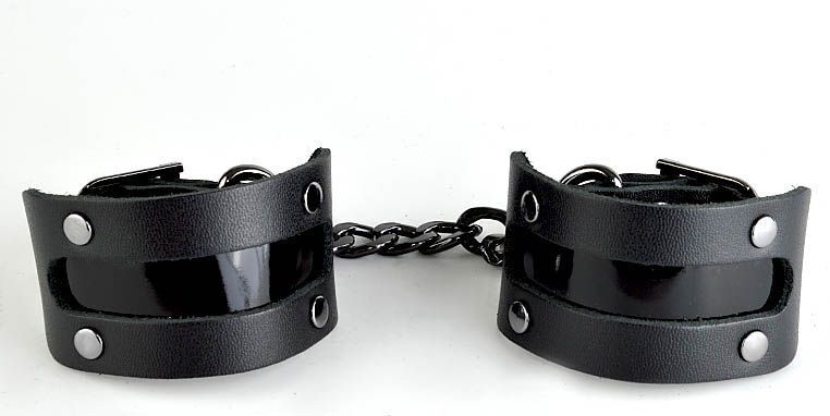 Наручники кожаные черные с лаковой вставкой 'Пятница', 25см, натуральная кожа
