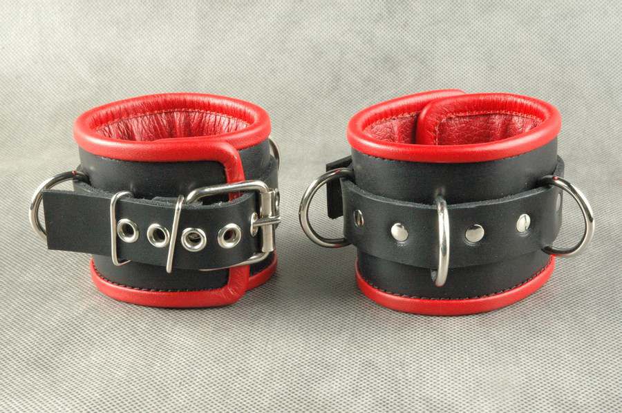 Эти кожаные наручники сочетают в себе стильный дизайн, прочность и удобство использования. Черный цвет с красной окантовкой создает эстетичный и привлекательный внешний вид, а мягкая красная подкладка обеспечивает комфорт при длительном ношении.