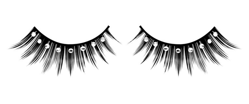Ресницы поставляются в паре (для двух глаз). Цветовая гамма: черные ресницы с белыми стразами. Для использования необходимы косметический клей (входит в комплект) и пинцет для аккуратного нанесения.