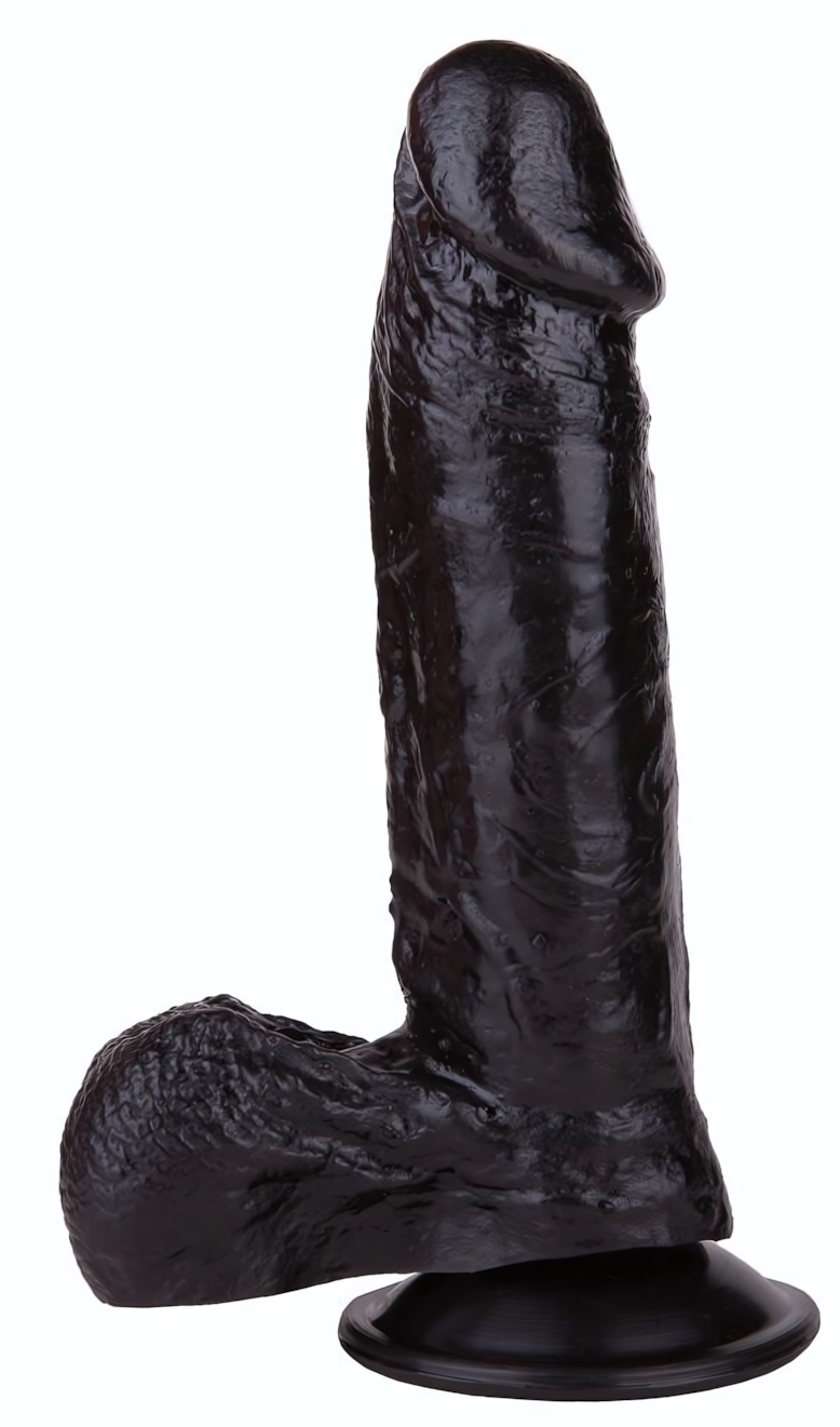 Фаллоимитатор черного цвета с мошонкой