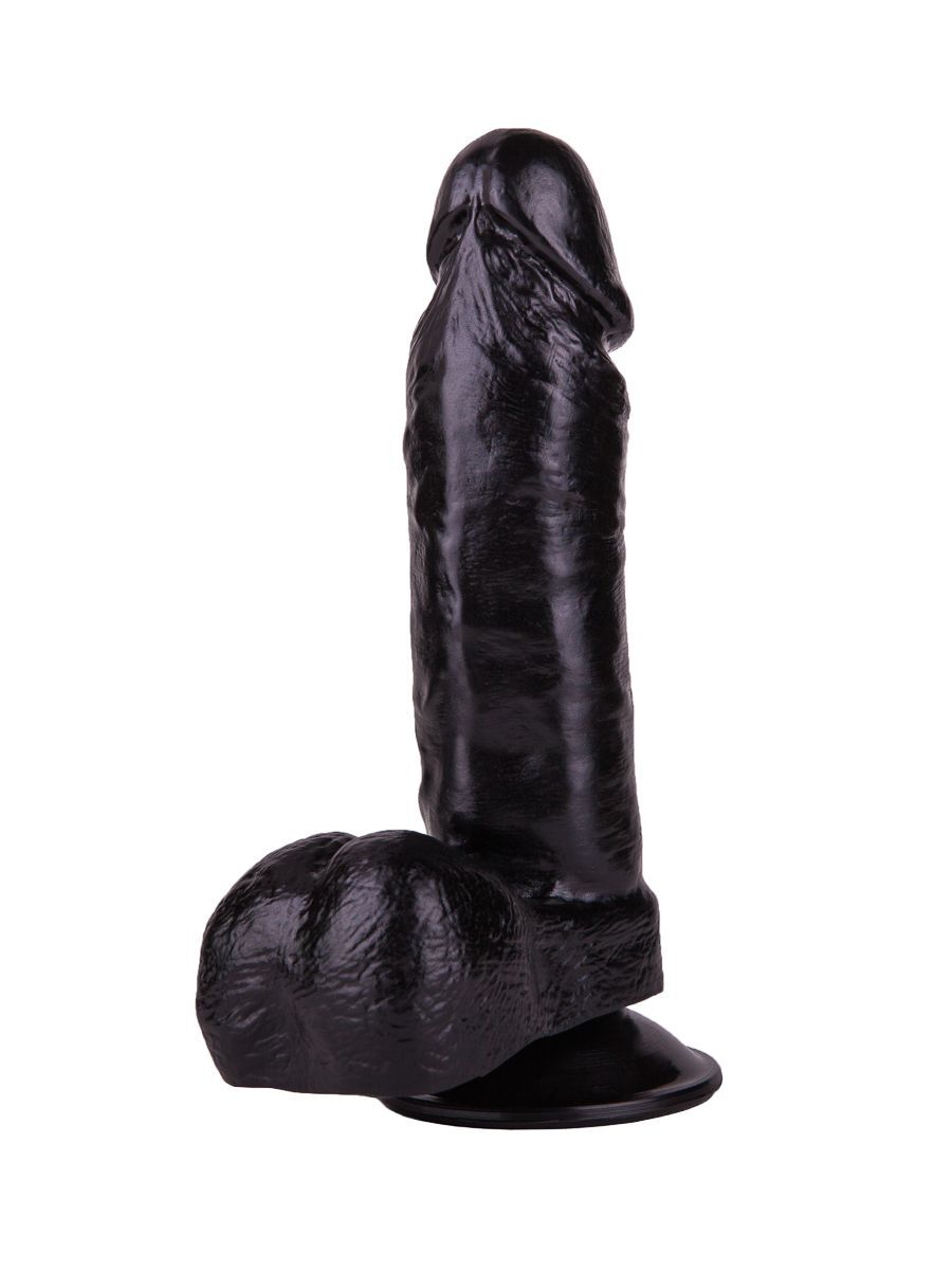 Изготовленный из гипоаллергенного ПВХ, фаллоимитатор сочетает упругость и эластичность. Матовая поверхность глубокого черного цвета обеспечивает тактильный комфорт, а округлая мошонка в основании дополнительно стимулирует эрогенные зоны.