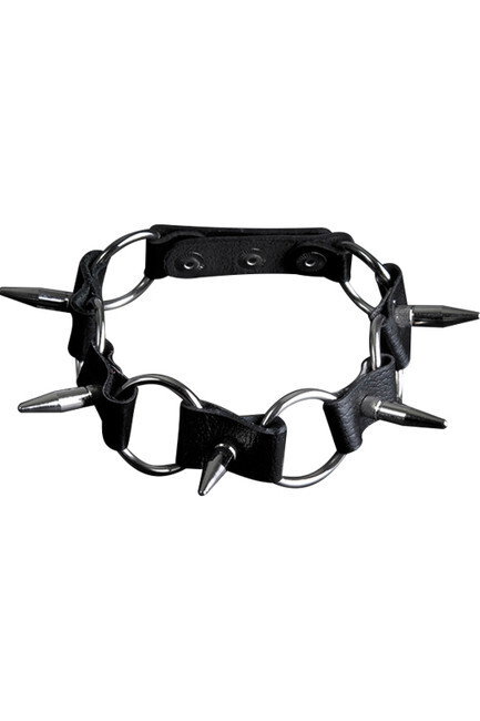 Ошейник выполнен из чёрной кожи и металлических элементов, что придаёт ему элегантный и в то же время агрессивный вид. Его универсальный размер подходит для большинства людей, а стильный дизайн делает его идеальным выбором для любителей БДСМ и фетиш-культуры. Не упустите возможность добавить этот ошейник в свою коллекцию аксессуаров!