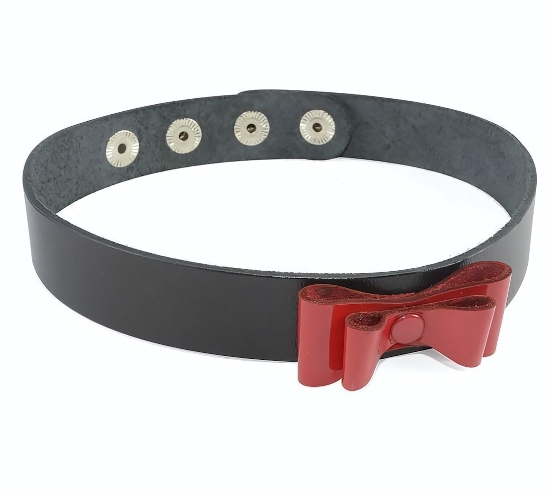 Этот элегантный ошейник из коллекции BDSM accessories сочетает комфорт и стиль. Натуральная кожа черного цвета подчеркивает вашу страсть к качеству, а яркий лаковый бант добавляет игривости.