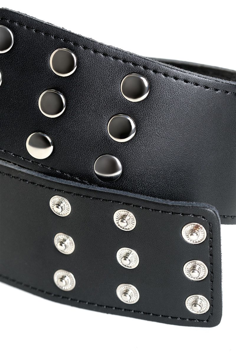 Ошейник выполнен из натуральной кожи черного цвета, прошит по краям для аккуратного внешнего вида и дополнительной прочности. Металлические элементы надежно закреплены, а кнопочная застежка позволяет выбрать комфортную степень прилегания. Аксессуар поставляется в индивидуальной упаковке и подходит для личного использования или в качестве подарка для взрослой аудитории.
