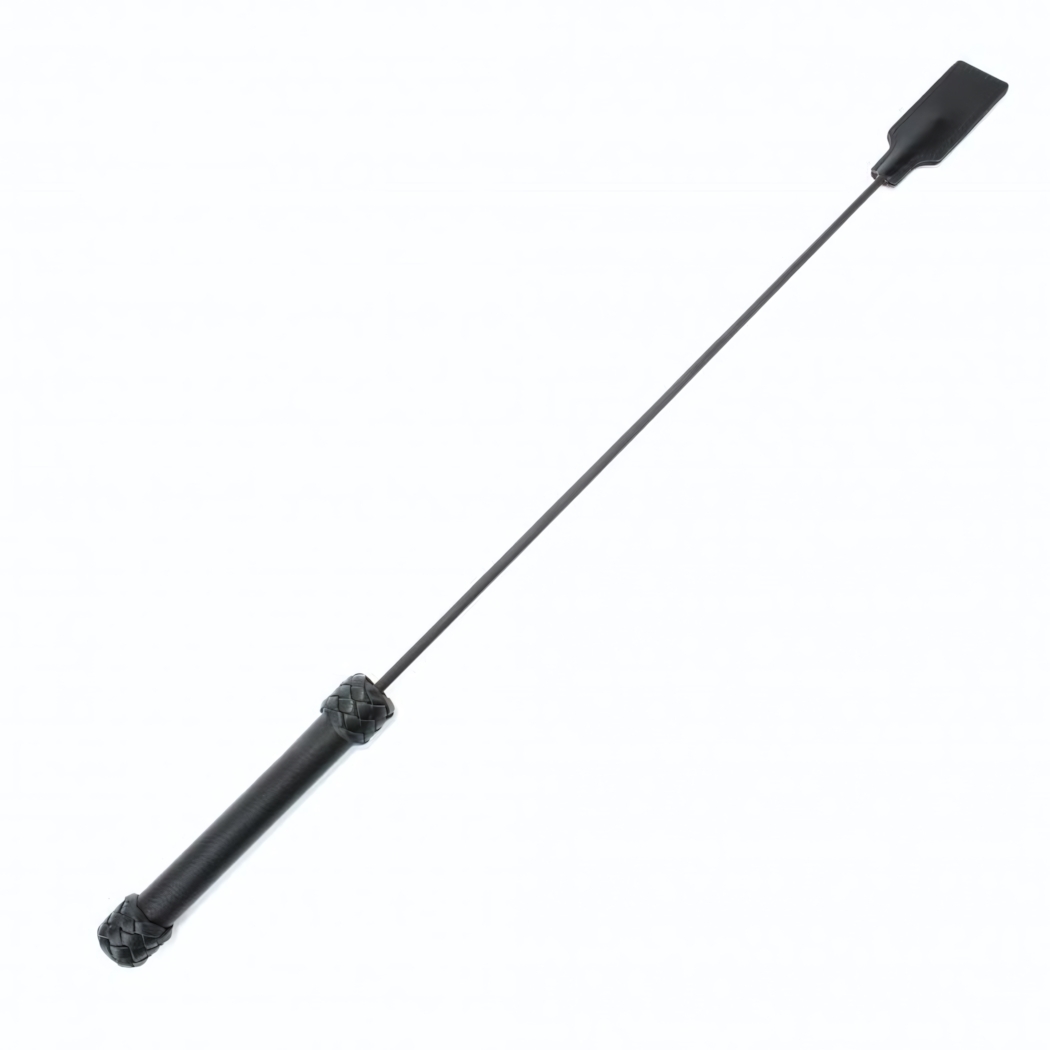 Стек для БДСМ из натуральной кожи, длина 77 см, черный цвет, гибкий шлепок, рукоять с плетением