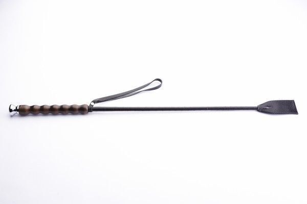 Стек BDSM 'Sitabella' с фигурной ручкой, натуральная кожа, 70 см, чёрный