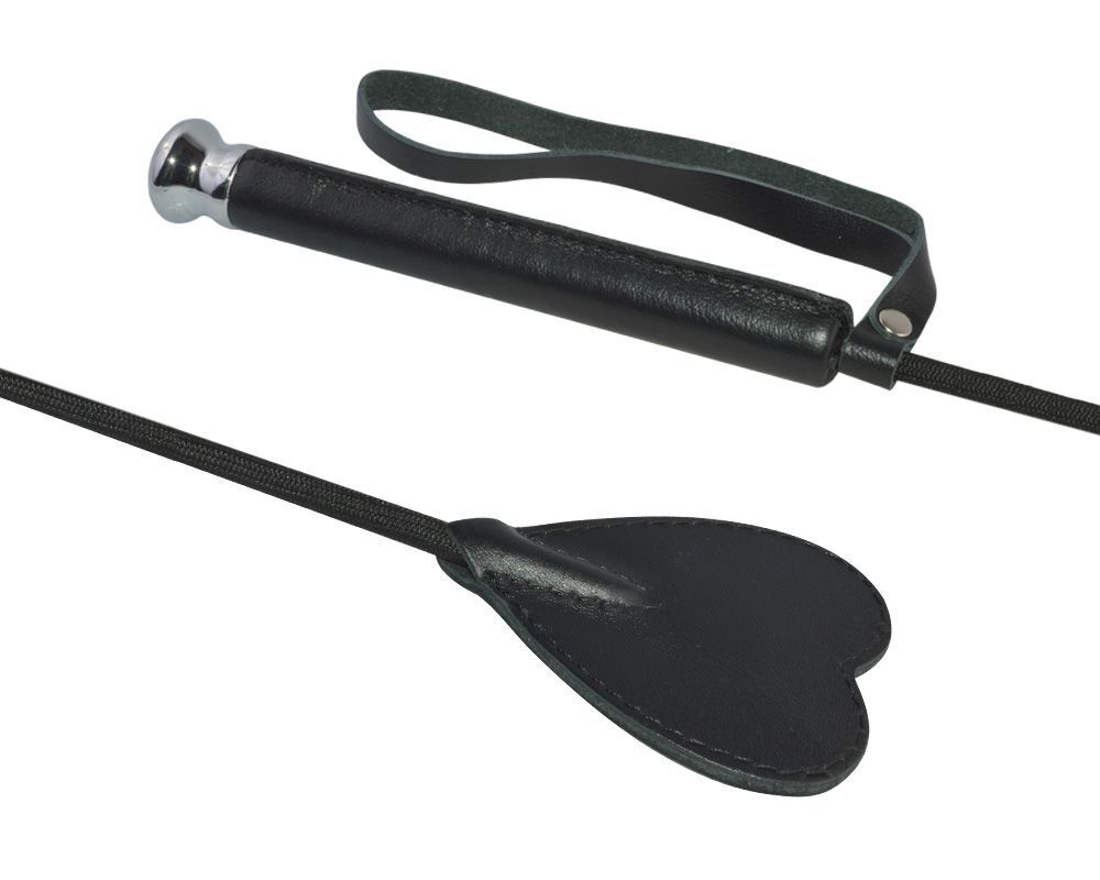 Плётка кожаная 'BDSM accessories', чёрная, с сердечком, 60см