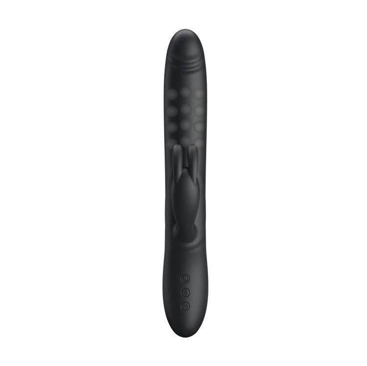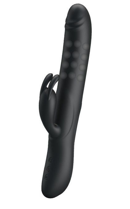 Вибратор 'Colin' с вращением и стимулятором, 25см, черный, силикон