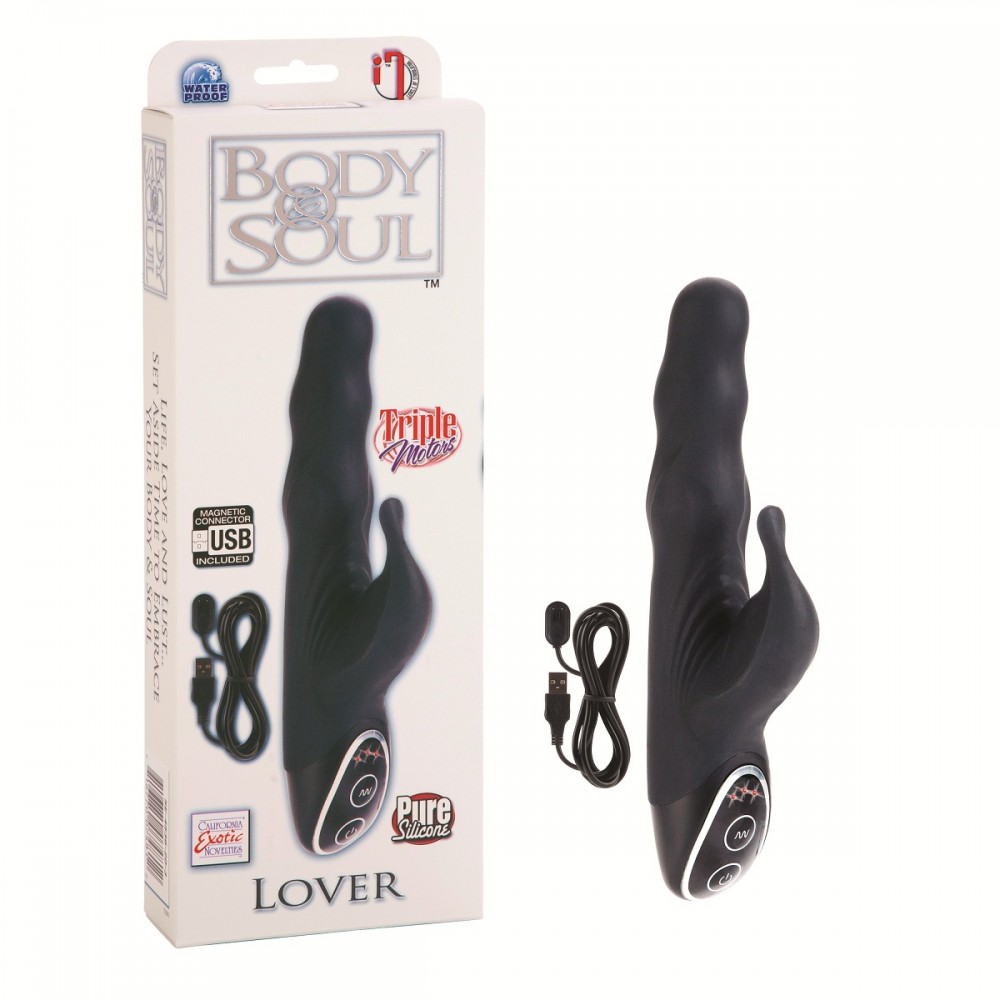 Вибратор Body & Soul "Lover" с тройным мотором, 7 режимов, usb-зарядка, силикон, 19.5 см, чёрный