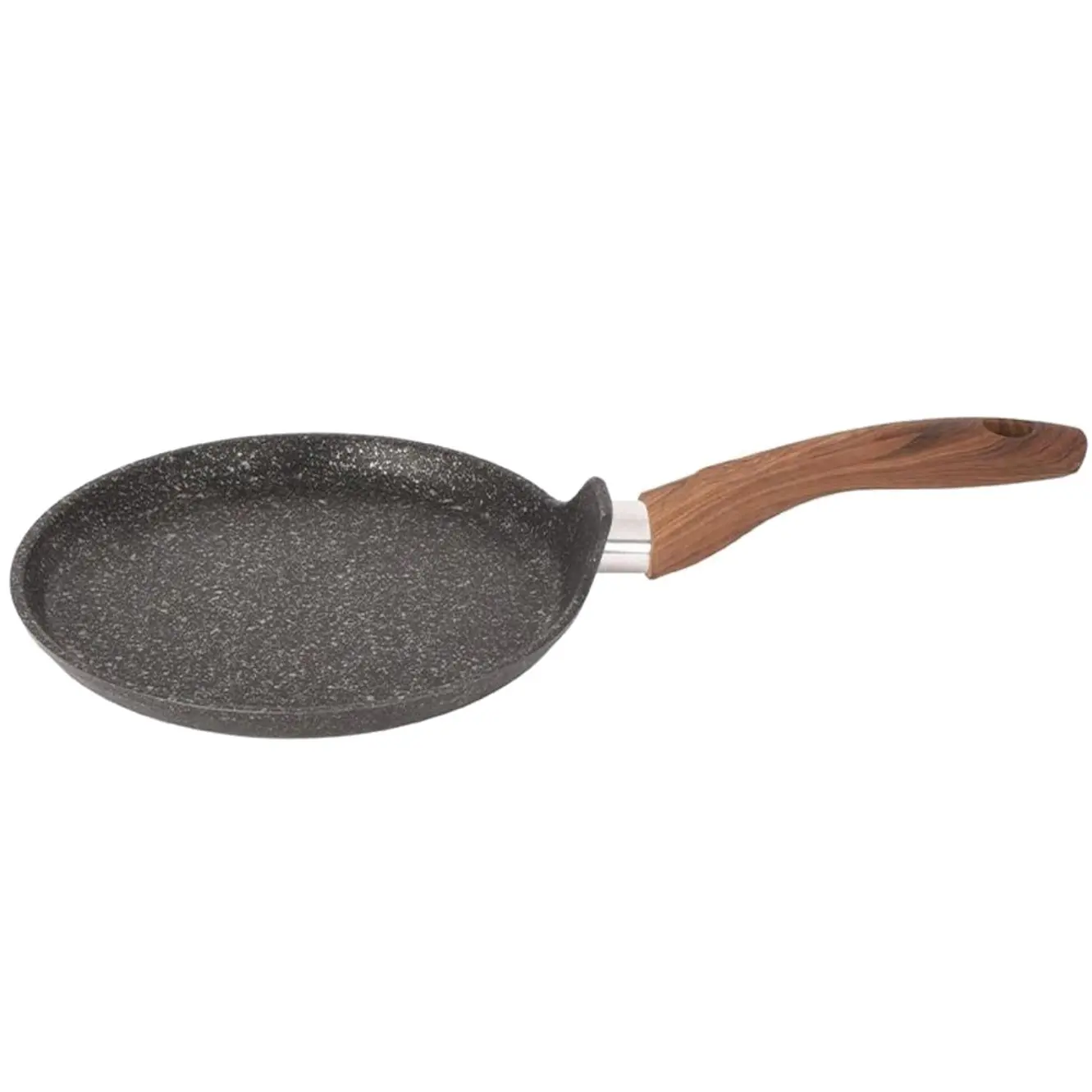 Сковорода блинная 220 мм, индукционная, ультра‑гранит покрытие, деревянная ручка, черный, экономичный прогрев без масла