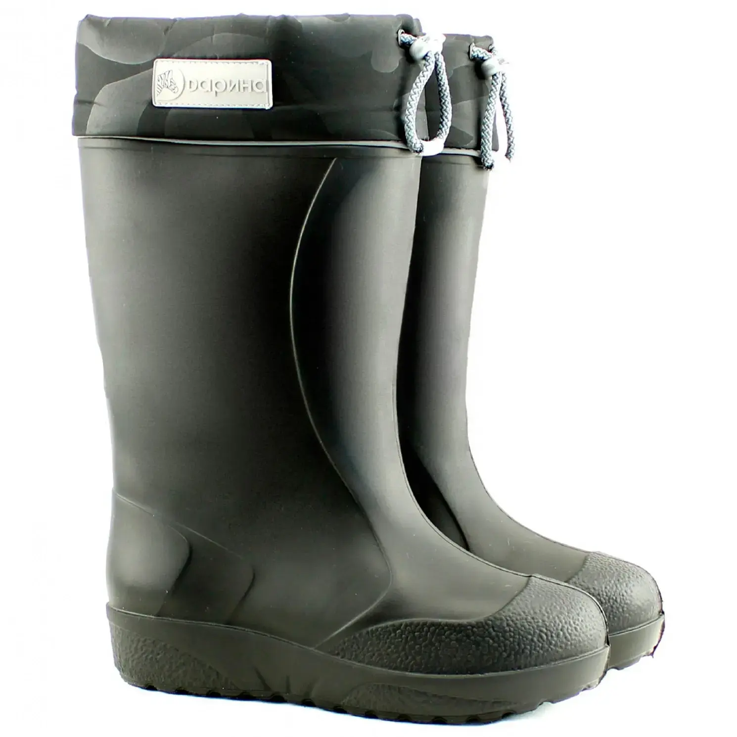 Сапоги подходят для повседневного использования, а также для активного отдыха на природе. Они легко надеваются и снимаются благодаря удобному шнурку для регулировки объема. Высокая форма сапог защищает ноги от снега и воды, а рифленая подошва обеспечивает отличное сцепление с различными поверхностями.