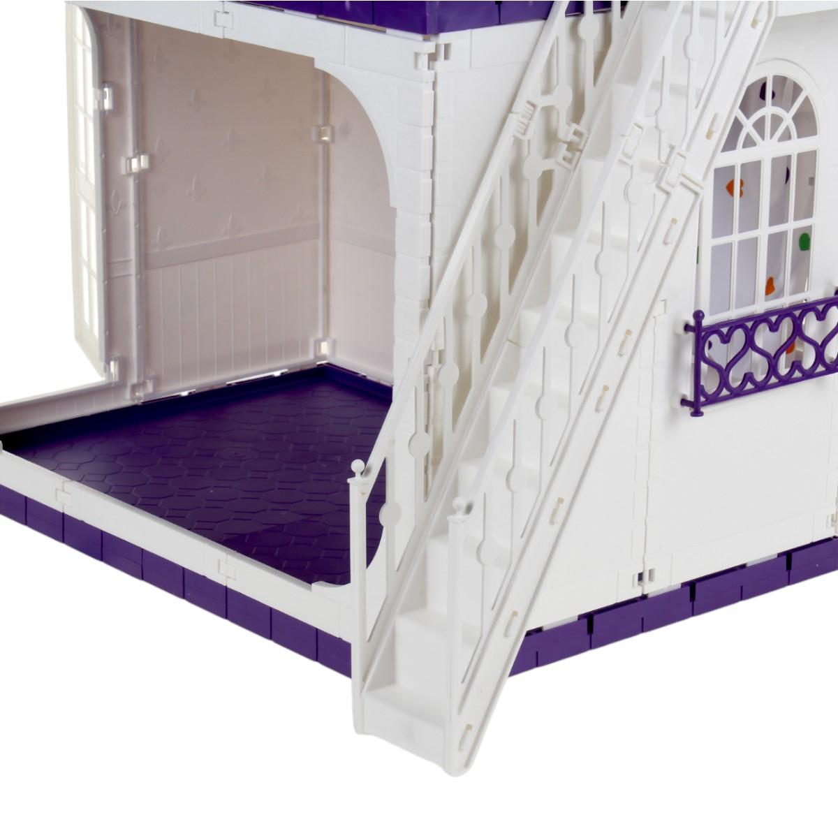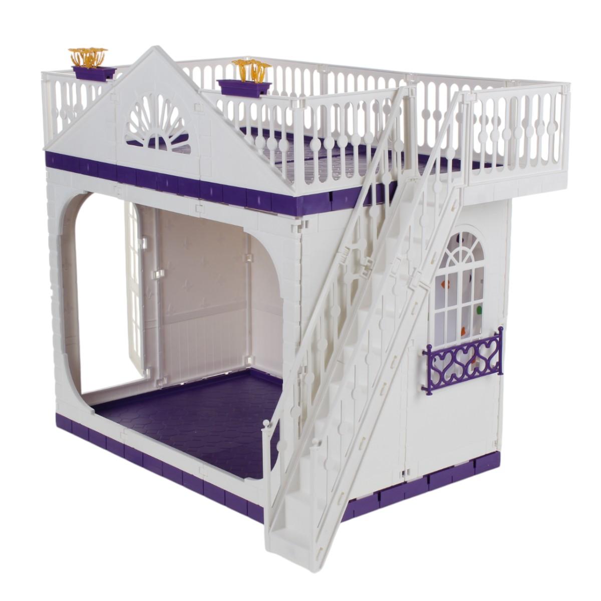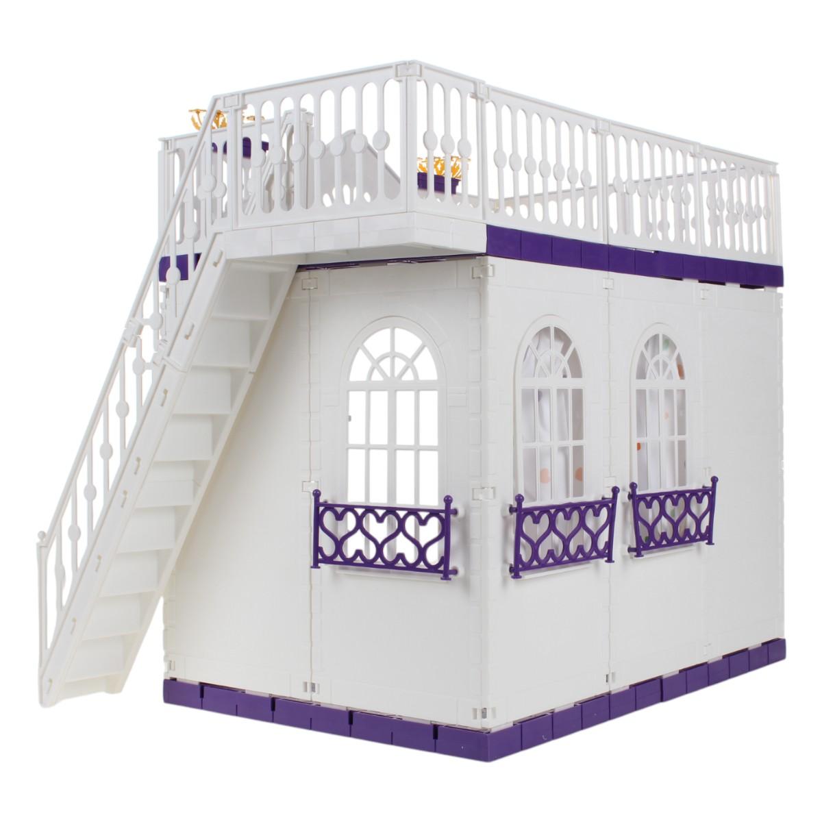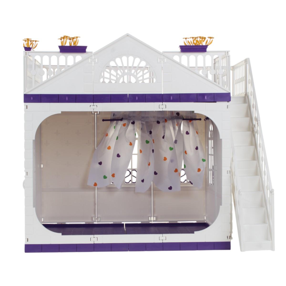 Кукольный домик изготовлен из прочного пластика, что гарантирует его долговечность. Внутри домика предусмотрены зоны для отдыха и кухни, а также балконы с перилами, что добавляет реалистичности в игру. В комплект входят две куклы, что позволяет сразу начать игру без дополнительных покупок.