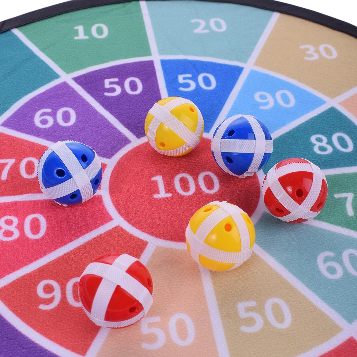 Комплект состоит из мягкой мишени и 6 липких шариков, которые легко крепятся и снимаются, что обеспечивает безопасность и удобство использования. Мишень можно крепить на стену или другую поверхность, а шарики закрепляются автоматически при попадании, что позволяет быстро начинать игру.