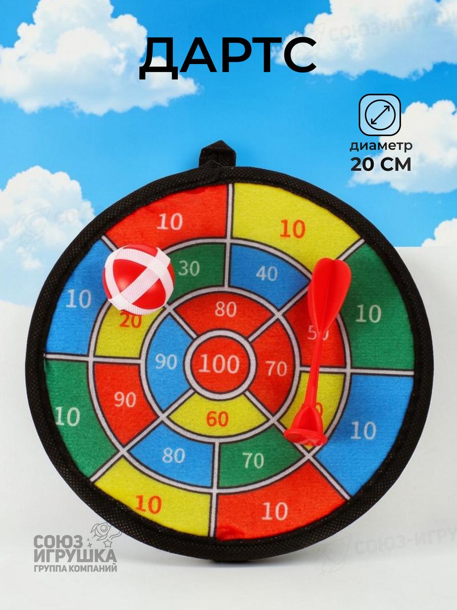 Дартс безопасный для детей, мишень с мягкими дротиками и мячиком, 30 см