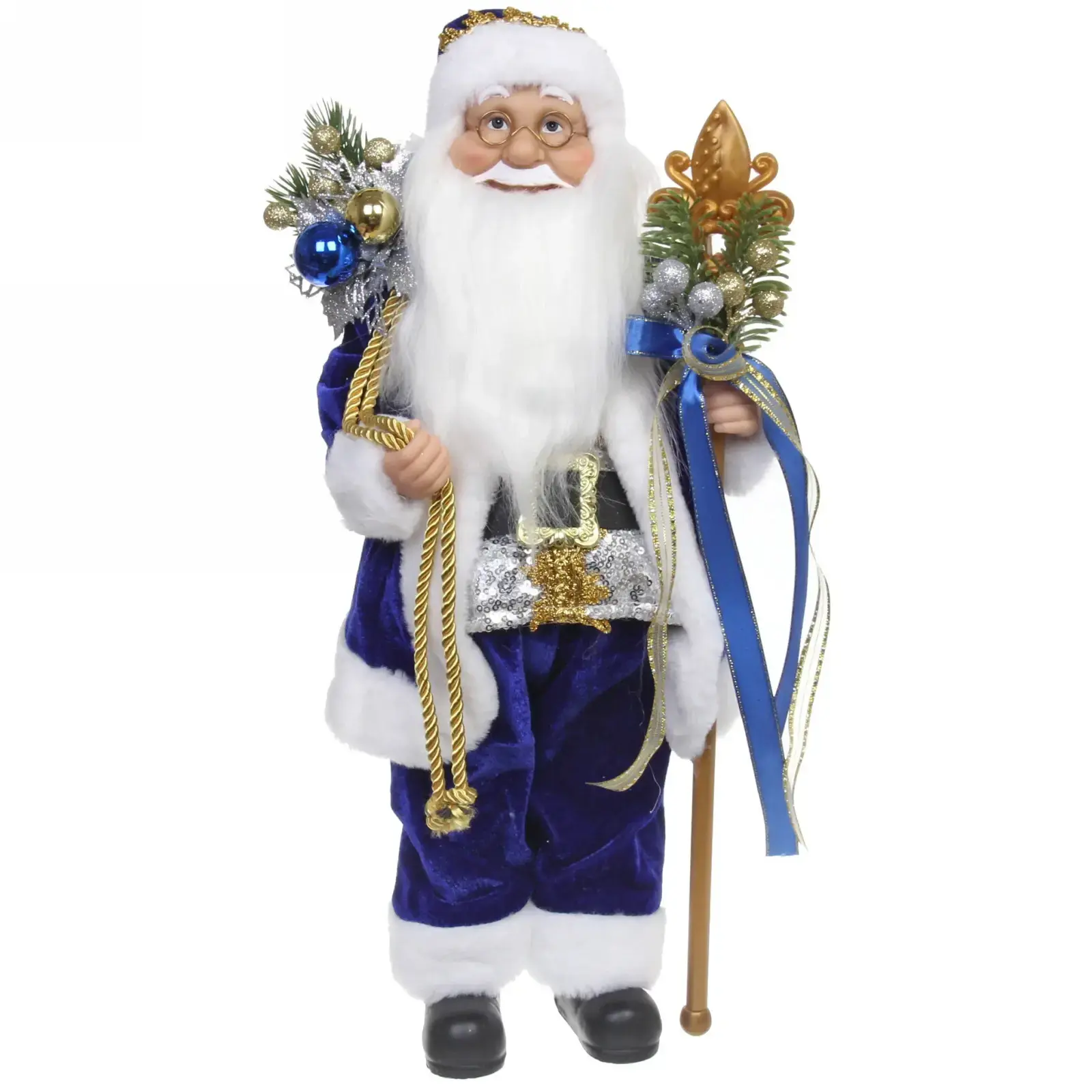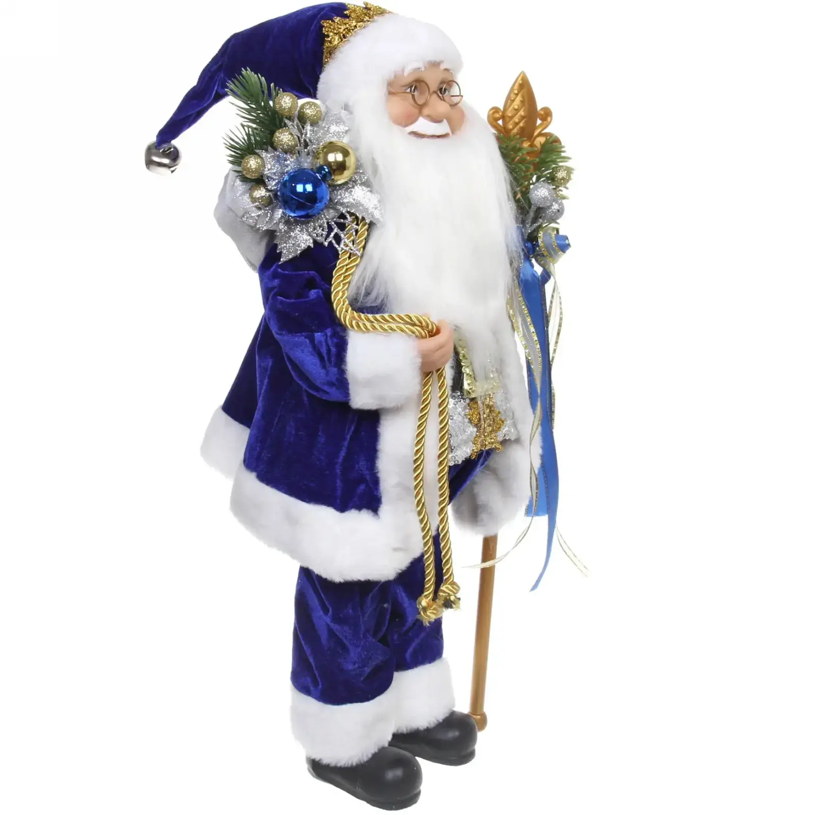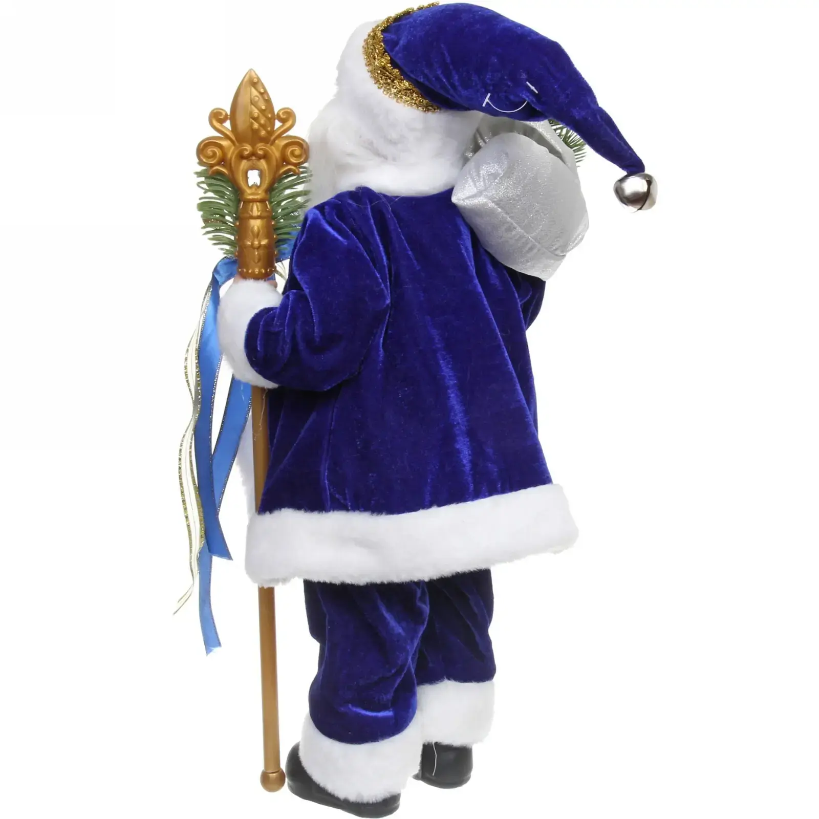 Дед Мороз 45см в синей шубе, с посохом и подарками, пластик/текстиль