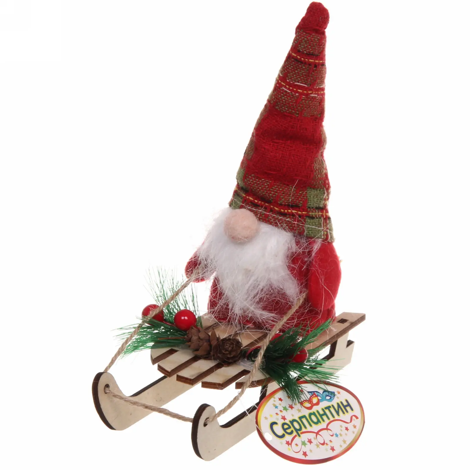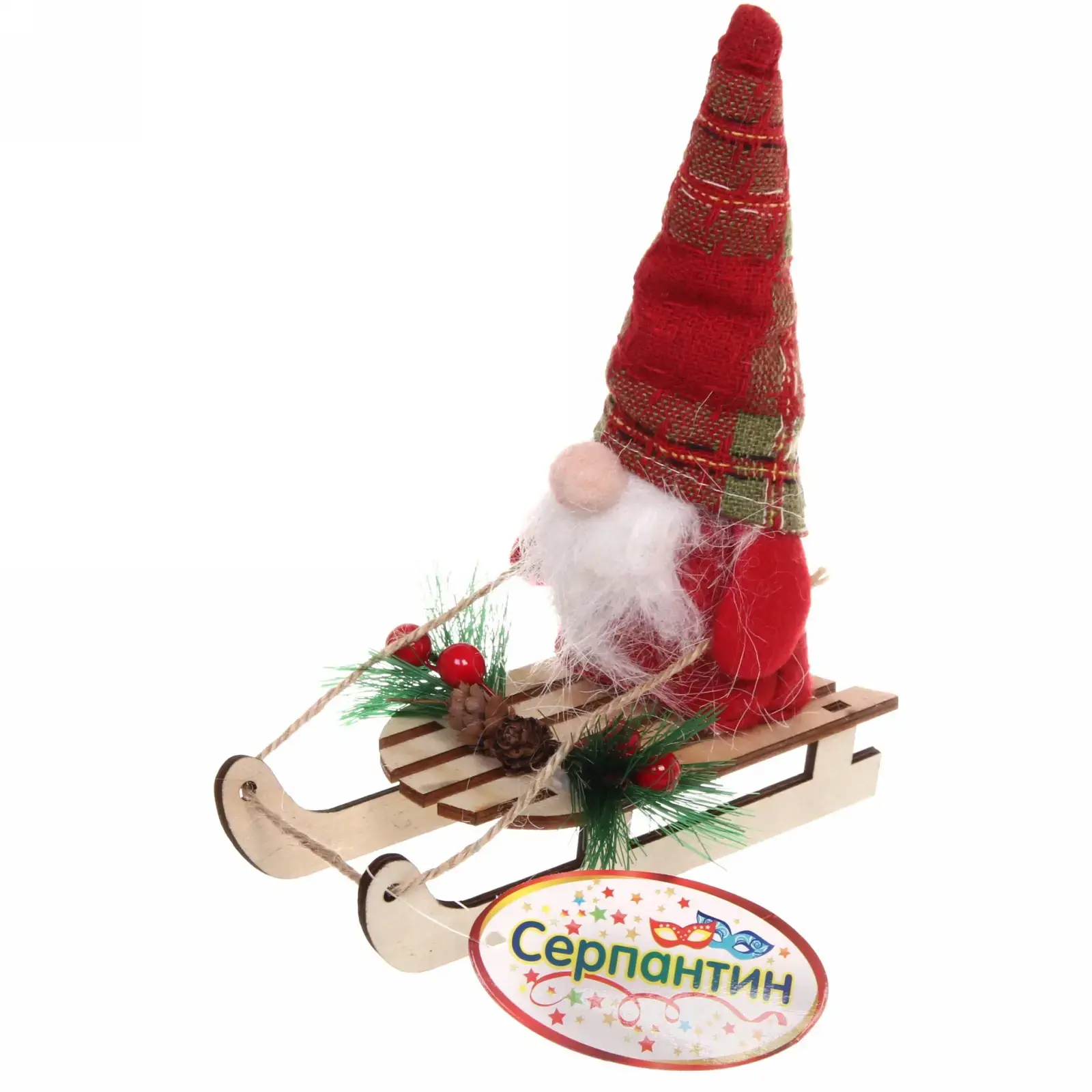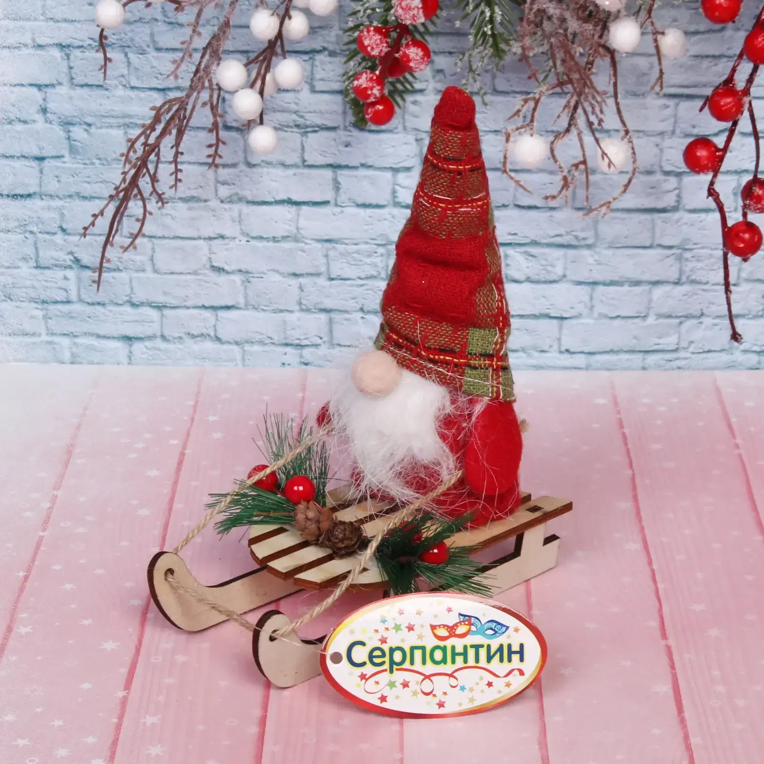 Особенностью модели является детализация: красочный колпак с узором, элементы декора — искусственная хвоя, ягоды, шишки — создают атмосферу зимнего уюта. Санки и персонаж имеют яркую расцветку, которая хорошо сочетается с любым стилем оформления.
