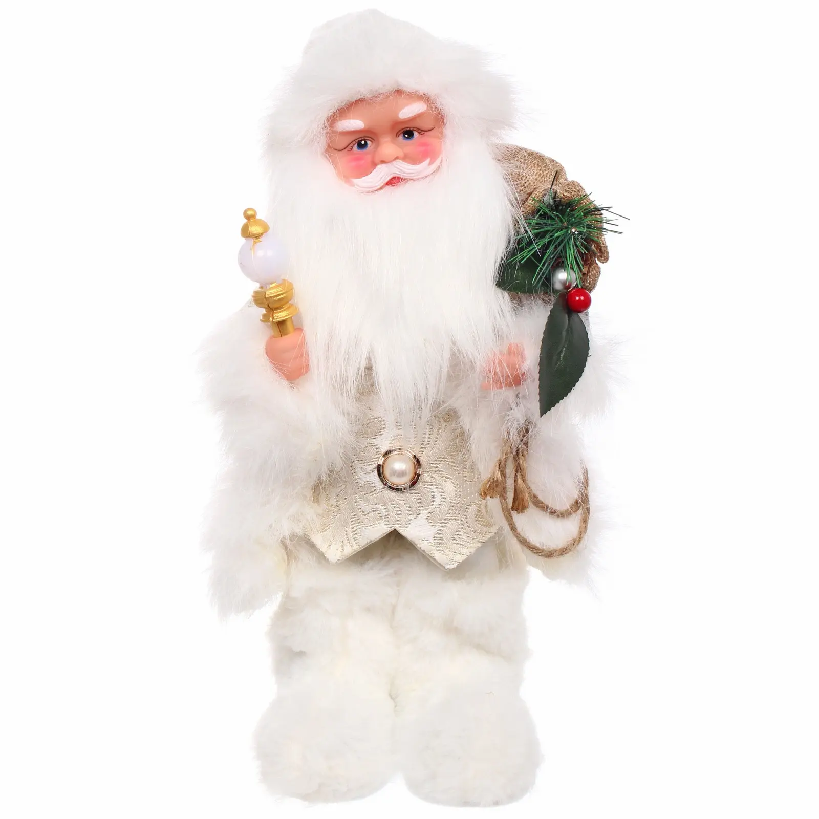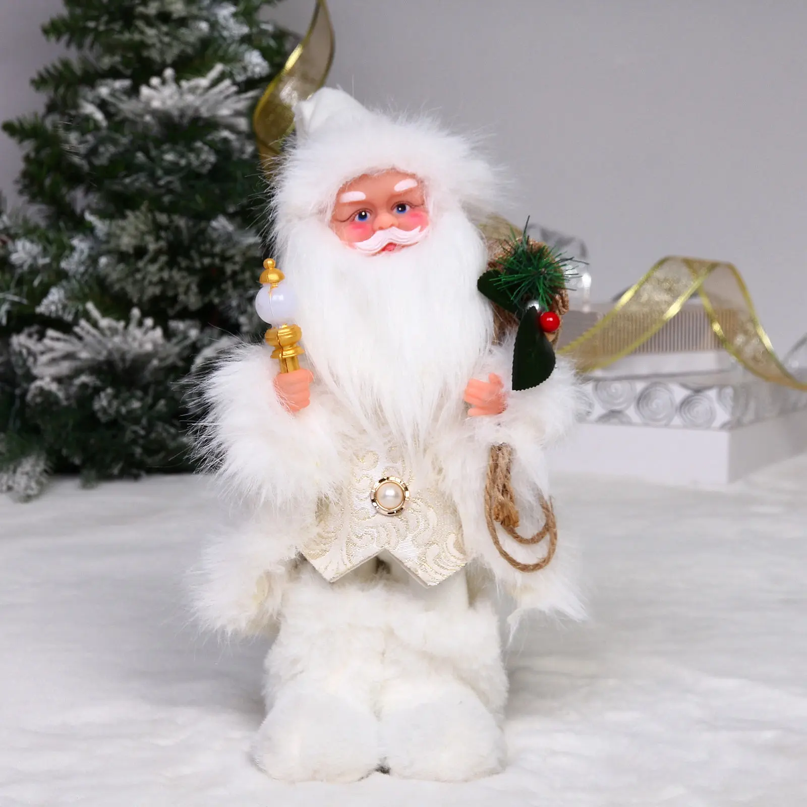 Фигурка дед мороз «лесной волшебник», 30 см, белый, текстиль-пластик, добавляет новогоднее настроение, лёгкая установка