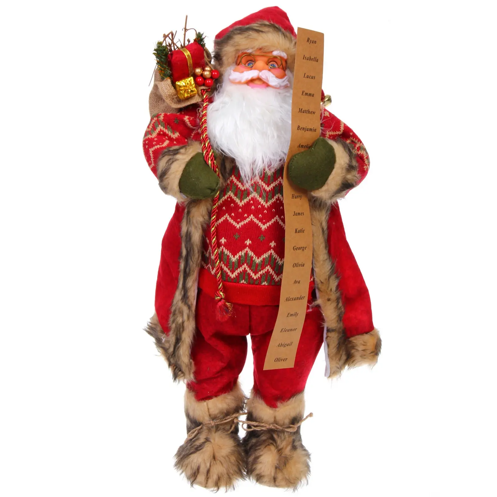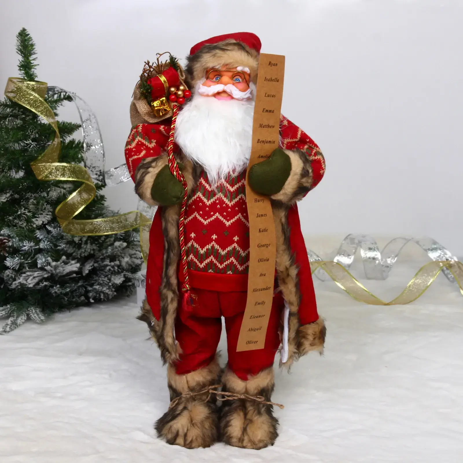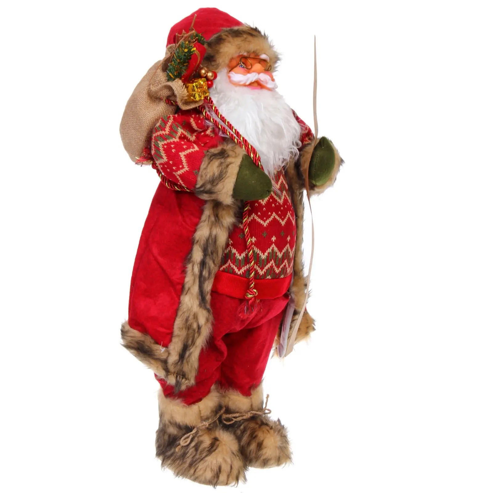Эта 60‑см фигурка идеально подходит для украшения праздничного стола, камина, окна или детской комнаты. Подойдёт как центральный элемент новогодней композиции, так и уютный аксессуар на полке. Благодаря лёгкой конструкции из текстиля и пластика, её легко переместить в любую часть дома.