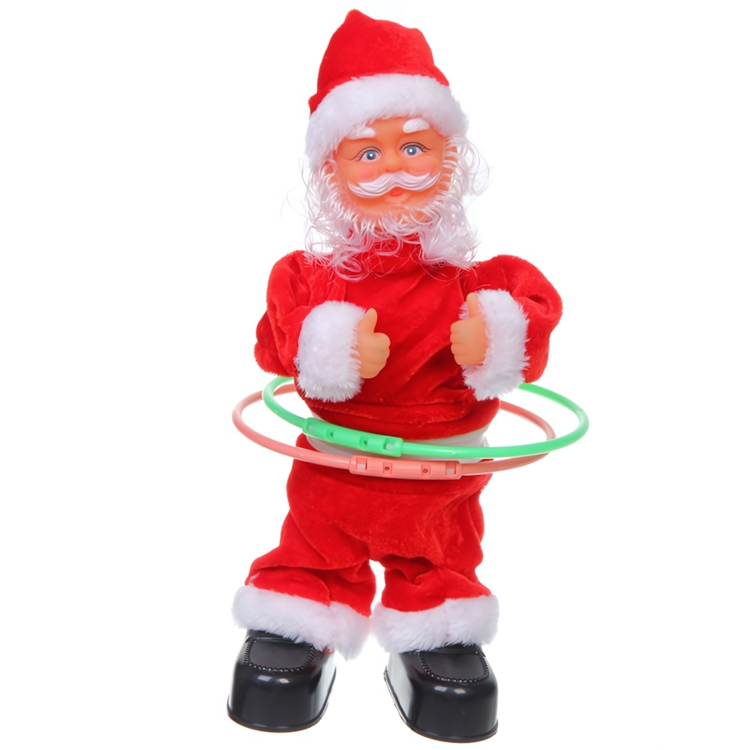 Дед мороз музыкальный 30 см, радостный звук, в красной шубе с обручами, работает от 3 aa‑батареек, без батареек
