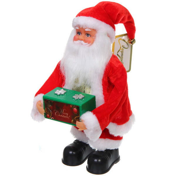 Этот музыкальный Дед Мороз высотой 30 см в красной шубе с подарком станет идеальным украшением для вашего дома в праздничный сезон. Он не только привнесет атмосферу волшебства, но и порадует вас и ваших близких своей мелодией. Подарите себе и своим родным частичку новогоднего чуда!