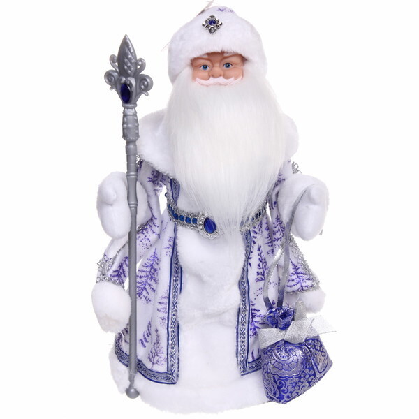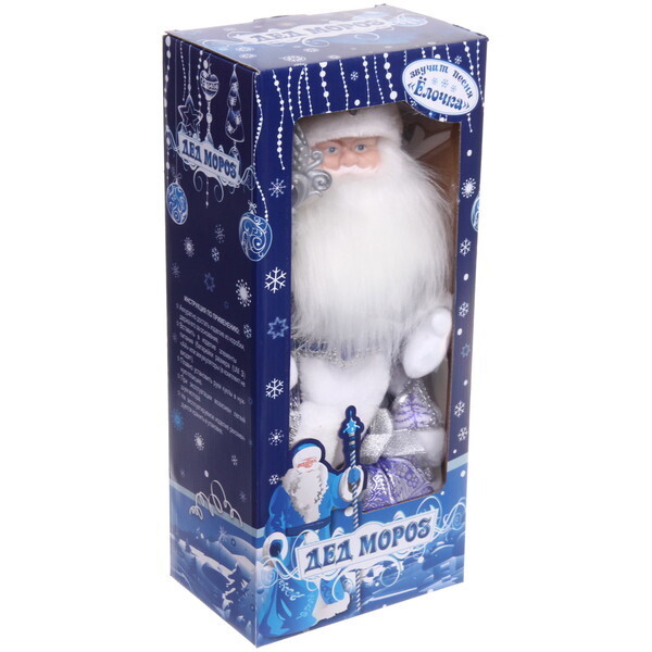 Дед Мороз выполнен из качественных материалов, что гарантирует его долговечность. Его белая шуба украшена узорами, а в руках он держит подарочную коробку и жезл, что подчеркивает его праздничный вид. Этот музыкальный Дед Мороз станет не только украшением, но и символом новогоднего волшебства в вашем доме.