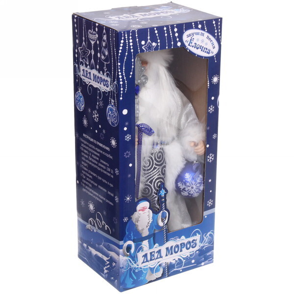 Этот музыкальный Дед Мороз выполнен из качественных материалов: текстиля и пластика, что обеспечивает его долговечность и надежность. Серебристый наряд с белыми меховыми вставками и синим поясом делает его стильным и современным. Он не только украсит ваш интерьер, но и станет любимой игрушкой для детей, которые будут с удовольствием играть с ним.
