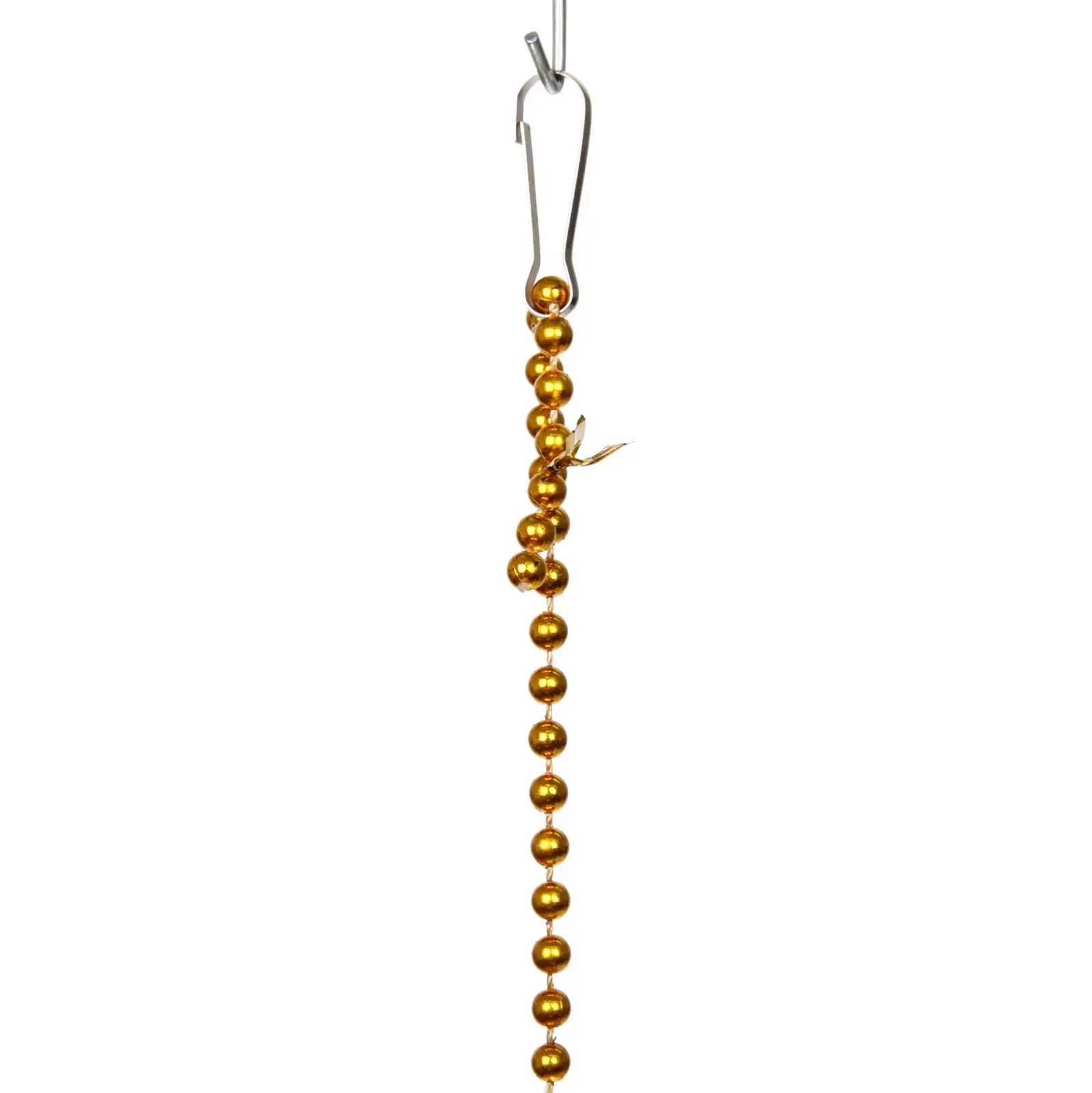 Фигурка выполнена в традиционном красном костюме с белыми вставками и украшена золотистыми элементами. Она имеет металлическую цепочку с колокольчиком, что добавляет ей дополнительный шарм. Дед Мороз с радостным выражением лица и подарком в руках станет символом праздника и радости в вашем доме.