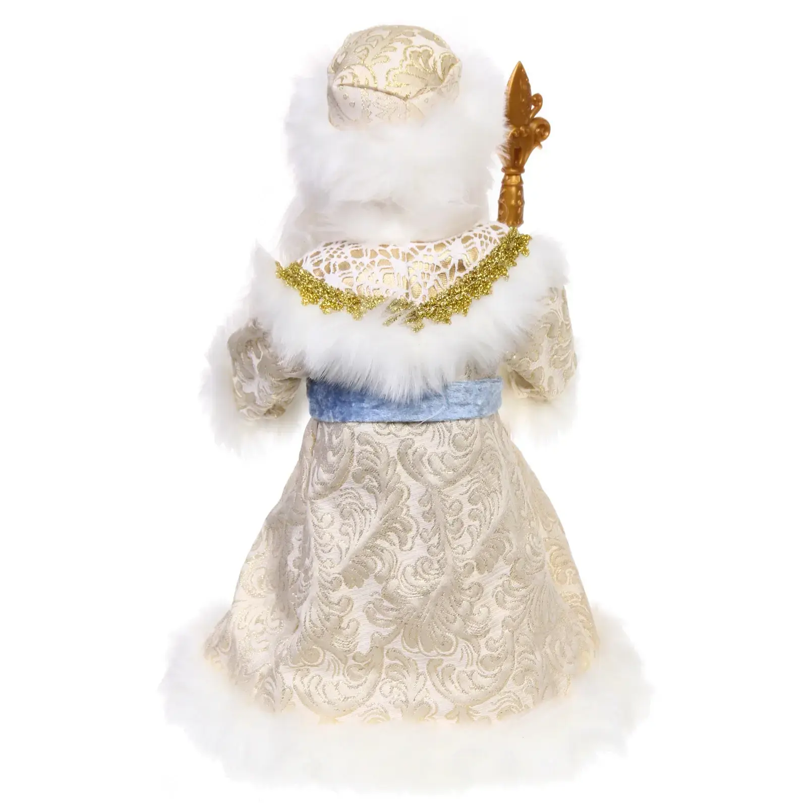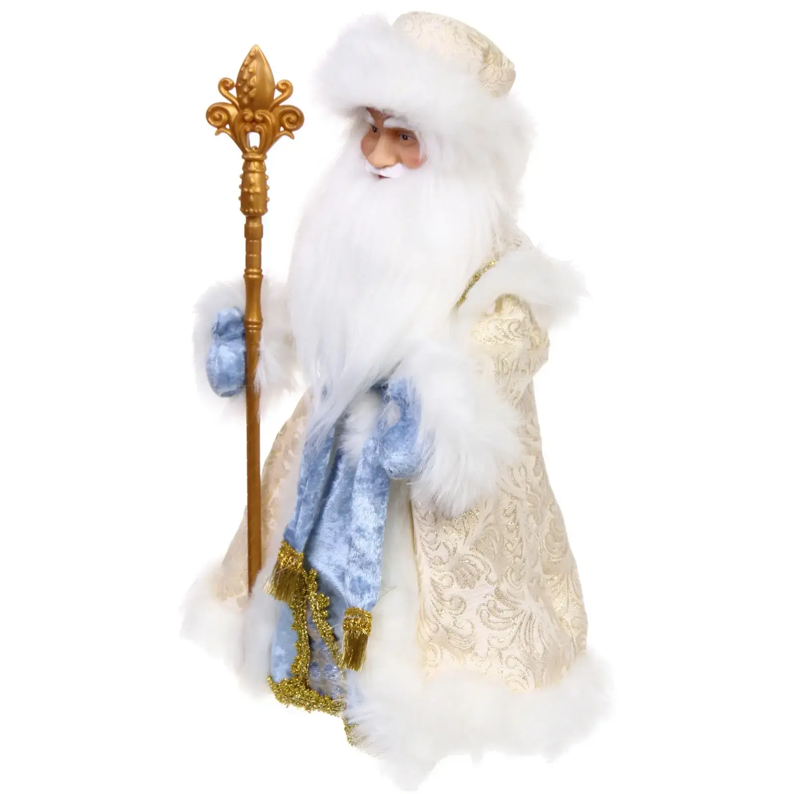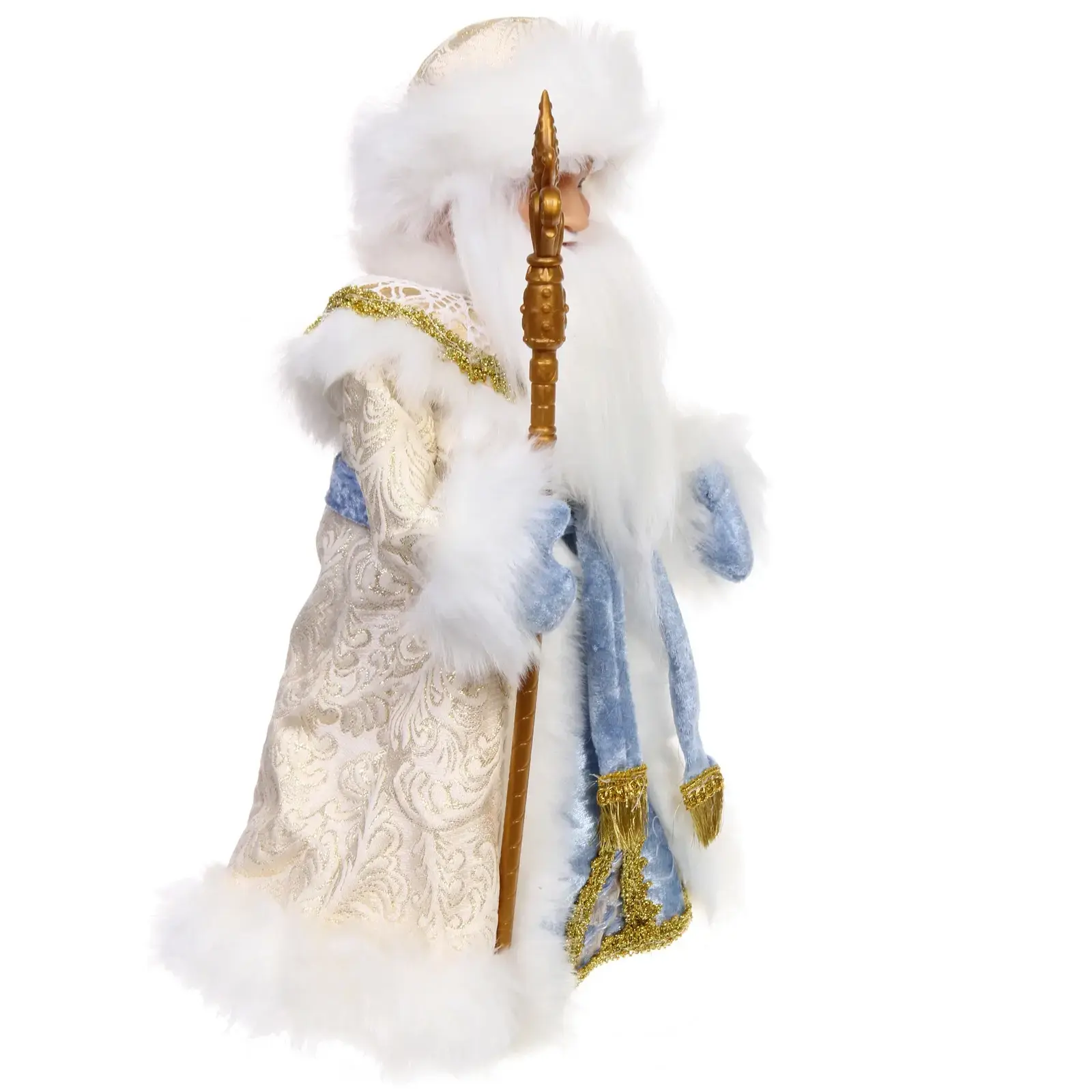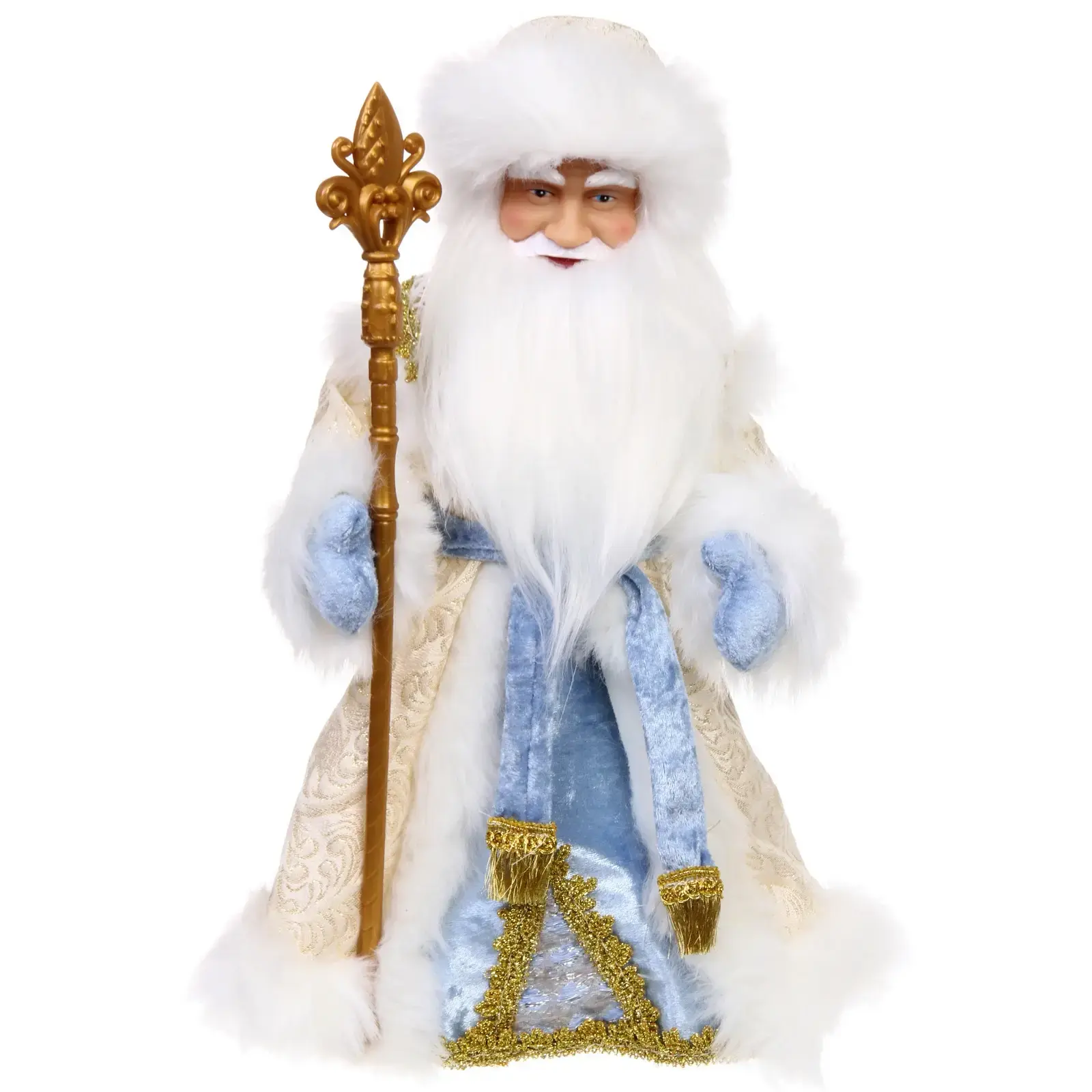 Эта фигурка выделяется своим реалистичным дизайном и вниманием к деталям. Длинная белая борода, голубая шубка с золотыми элементами и жезл с золотым верхом делают её настоящим произведением искусства. Дед Мороз «Сказка» не только украсит ваш дом, но и создаст атмосферу праздника и радости.