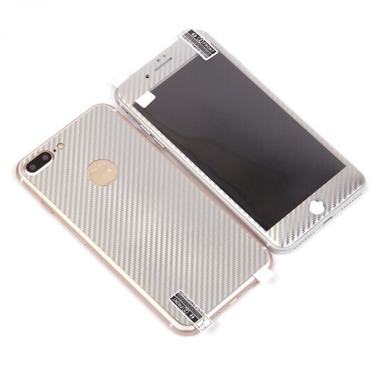 Пленка имеет толщину всего 0.3 mm и выполнена в золотом цвете с текстурой, имитирующей углеродное волокно. Она идеально подходит для iPhone 7 Plus и легко устанавливается благодаря удобным стикерам. Защитите свой смартфон стильно и эффективно!