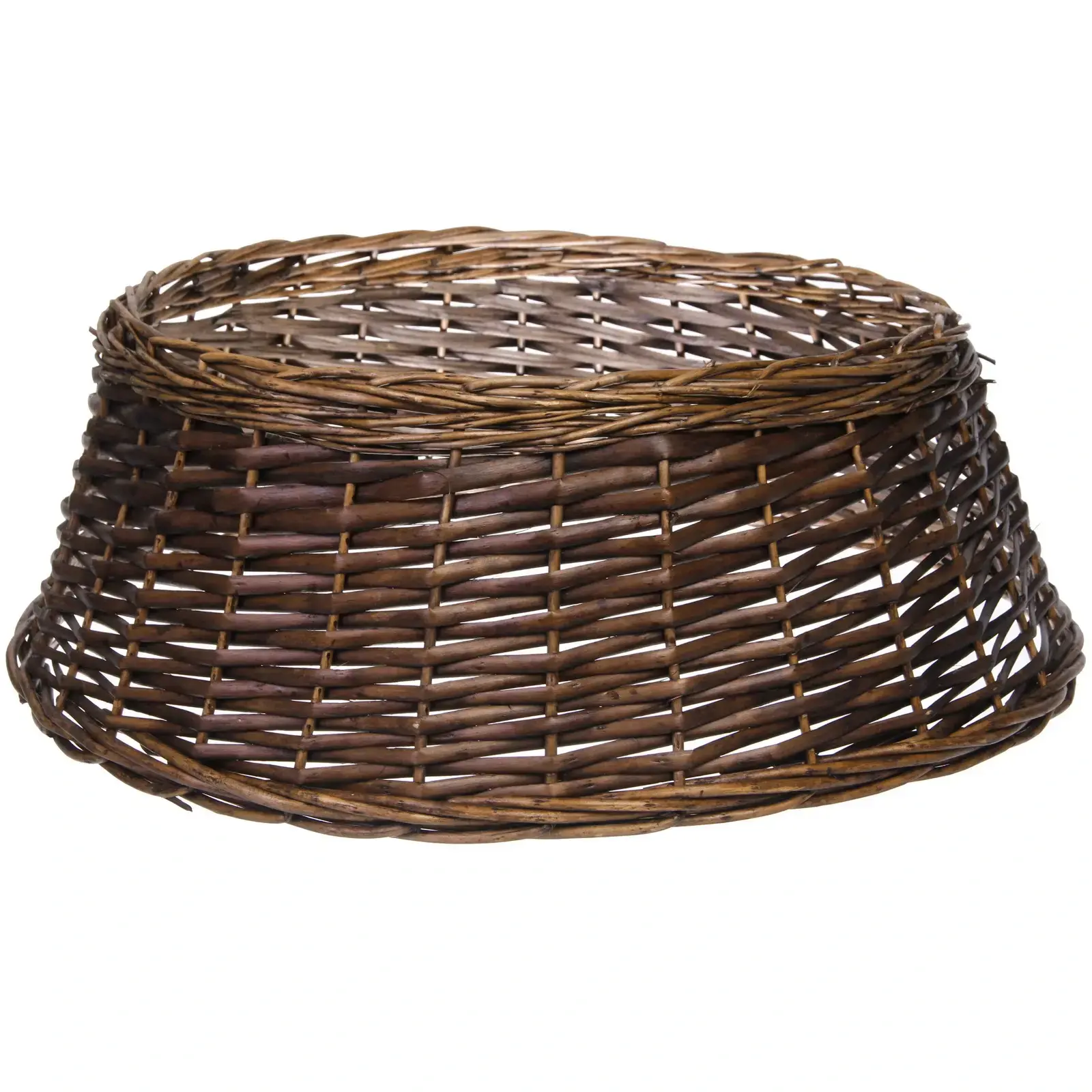 Размеры основания составляют d50*D65 см в диаметре и h22 см в высоту, что делает его достаточно вместительным для большинства ёлок. Тёмно-коричневый цвет и натуральный материал придают ему стильный и современный вид, который будет радовать вас и ваших близких на протяжении всего праздничного сезона.
