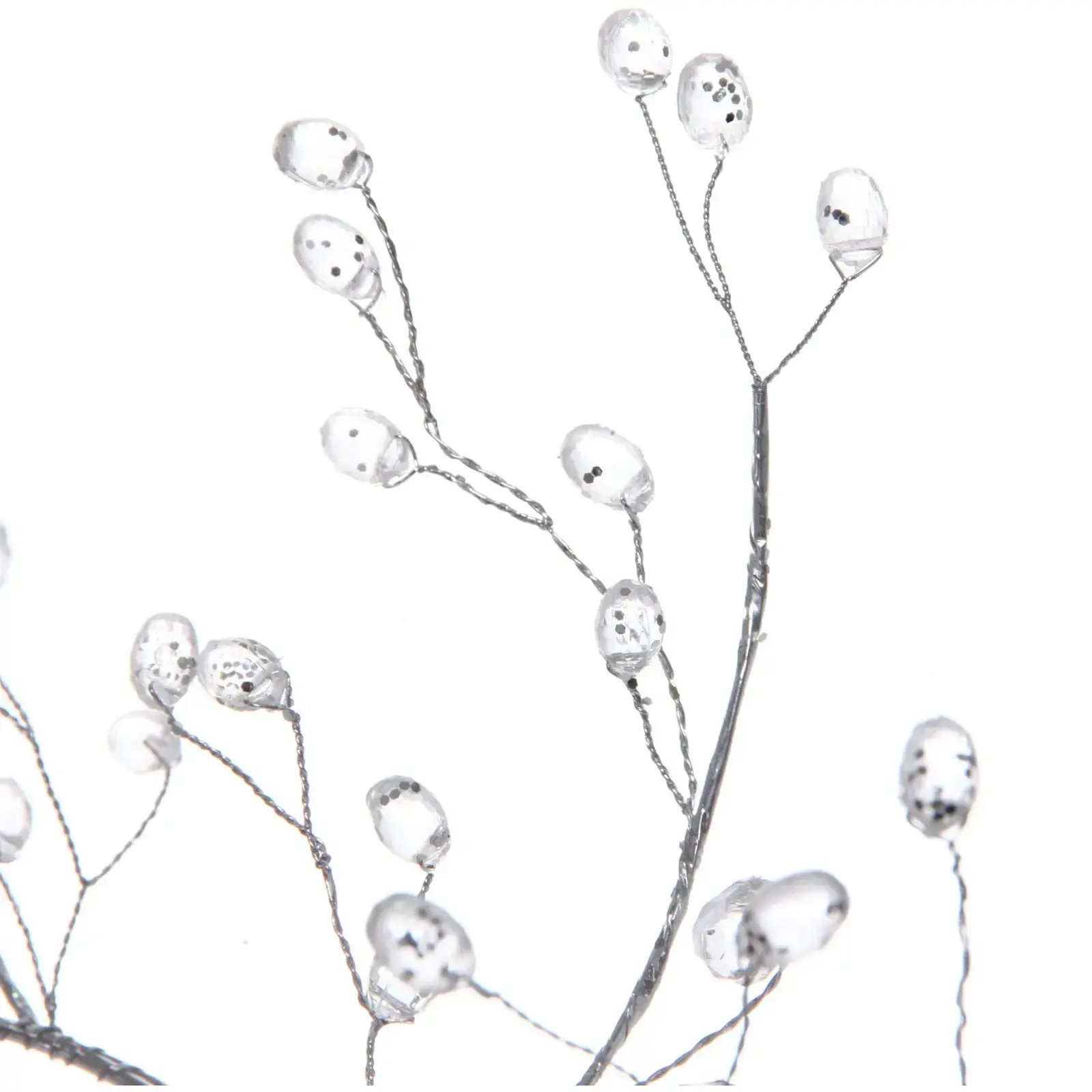 Изящное украшение с прозрачными бусинами и серебристыми ветвями создаст атмосферу волшебства в любом пространстве. Идеально подходит для новогоднего декора, свадебных образов и тематических мероприятий.