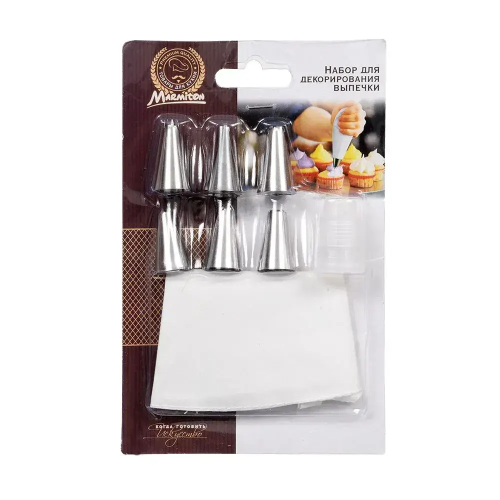 Набор для декорирования выпечки marmiton: мешок-кондитер + 6 стальных насадок, профессиональный