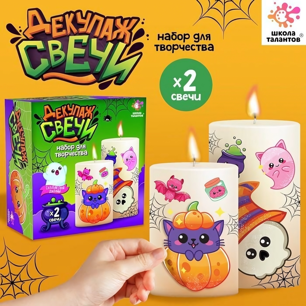 Набор для декупажа свечей «Хэлоуин» позволяет легко освоить уникальную технику горячего декорирования и изготовить эффектные аксессуары для тематической вечеринки. Яркие свечи с фирменными рисунками станут изюминкой вашего интерьера или оригинальным подарком.