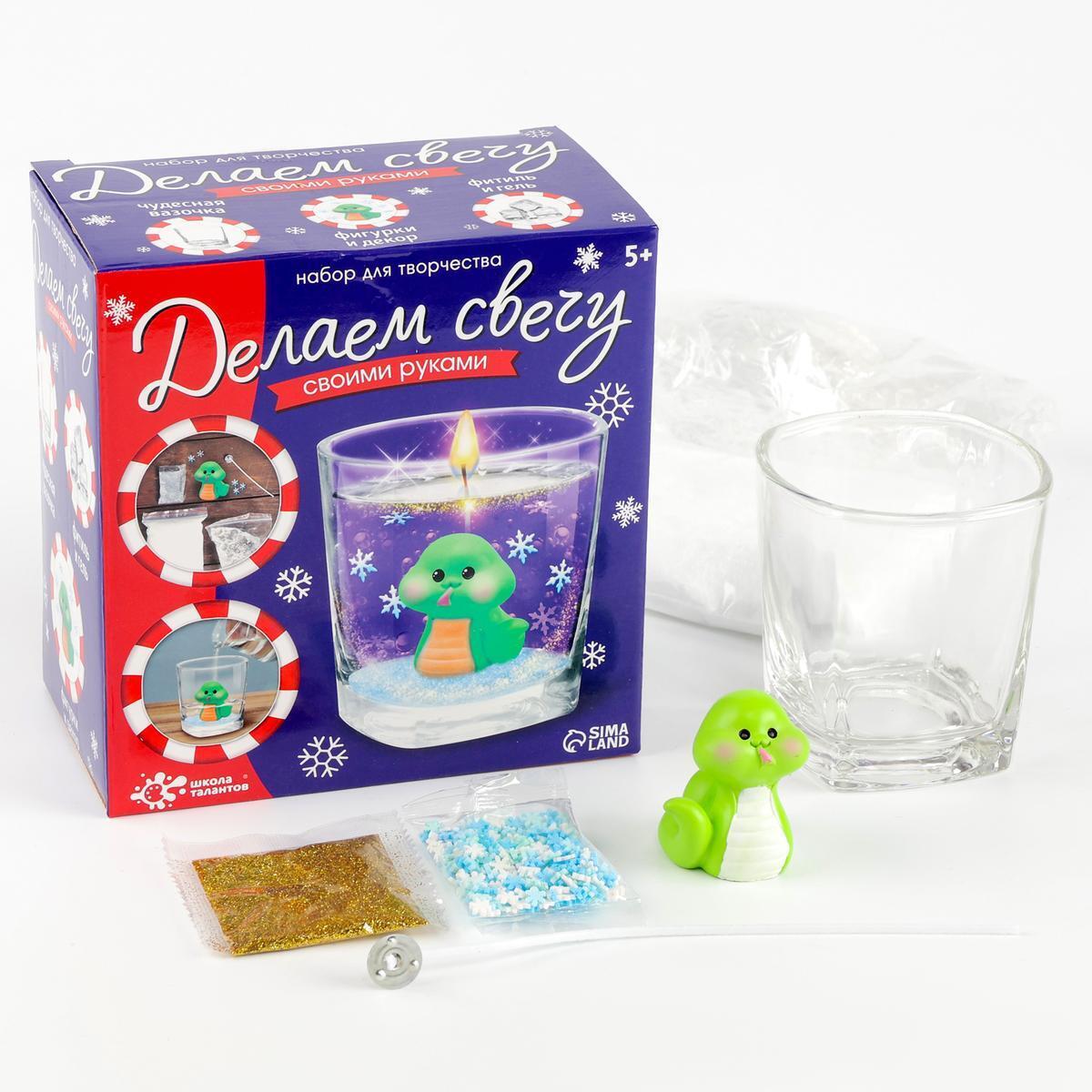 Набор для творчества «Зеленая змея»: создание свечи с блестками и искусственным снегом, 5+