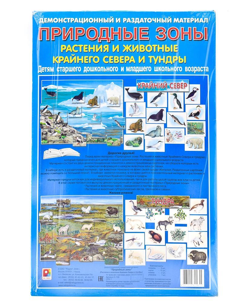 Развивающий материал "Природные зоны": растения и животные севера, для дошкольников и младших школьников, картон
